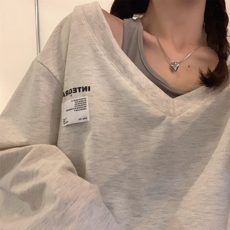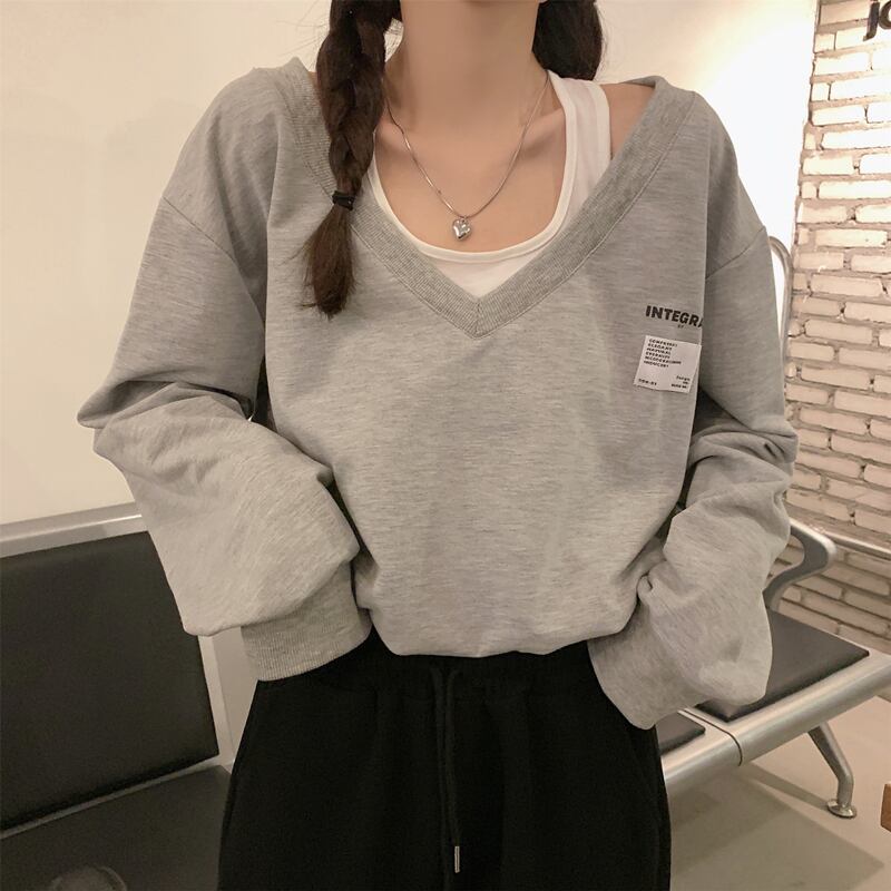 秋レタープリント長袖特大パーカー女性の偽ツーピーススウェット女性原宿学生カジュアルストリート ロング シャツ かわいい オータム 秋物 Aim54234076090