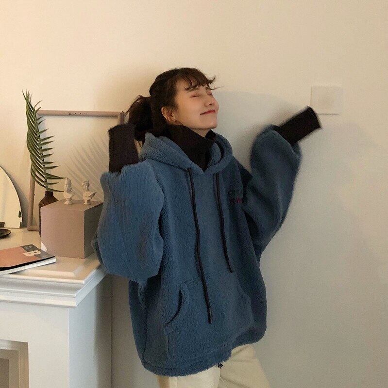 秋パーカー女性厚み子羊フリース特大パーカー原宿手紙刺繍タートルネックカジュアルフルスリーブスウェット シャツ かわいい オータム 秋物 Aim12874093374