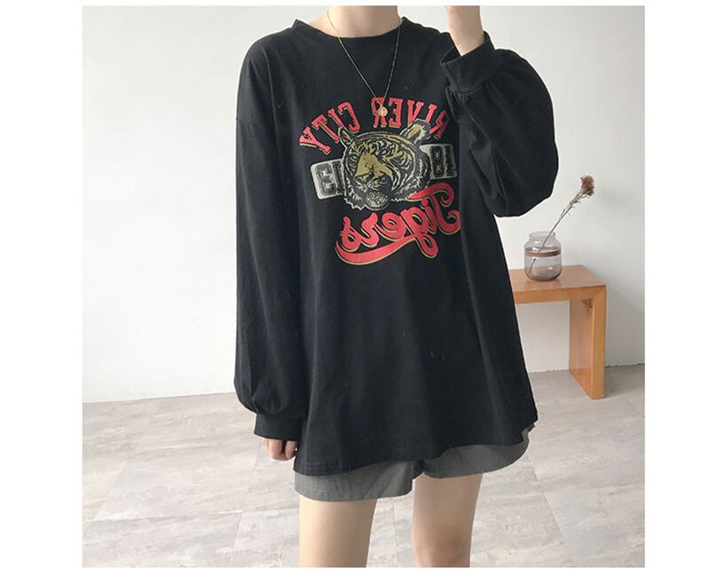 原宿長袖おかしい漫画の女性の Tシャツ秋の女性特大 tシャツホワイトロングストリート女性 tシャツ かわいい オータム 秋物 Aim35902124533