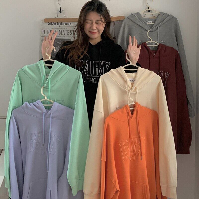 原宿 BF レジャースウェットシャツ韓国刺繍手紙綿パーカー女性フード付きポケット Streetswear 秋ルーズトップス レッド コットン ストリート かわいい オータム 秋物 Aim80539113857