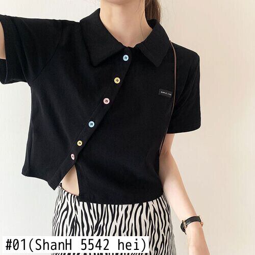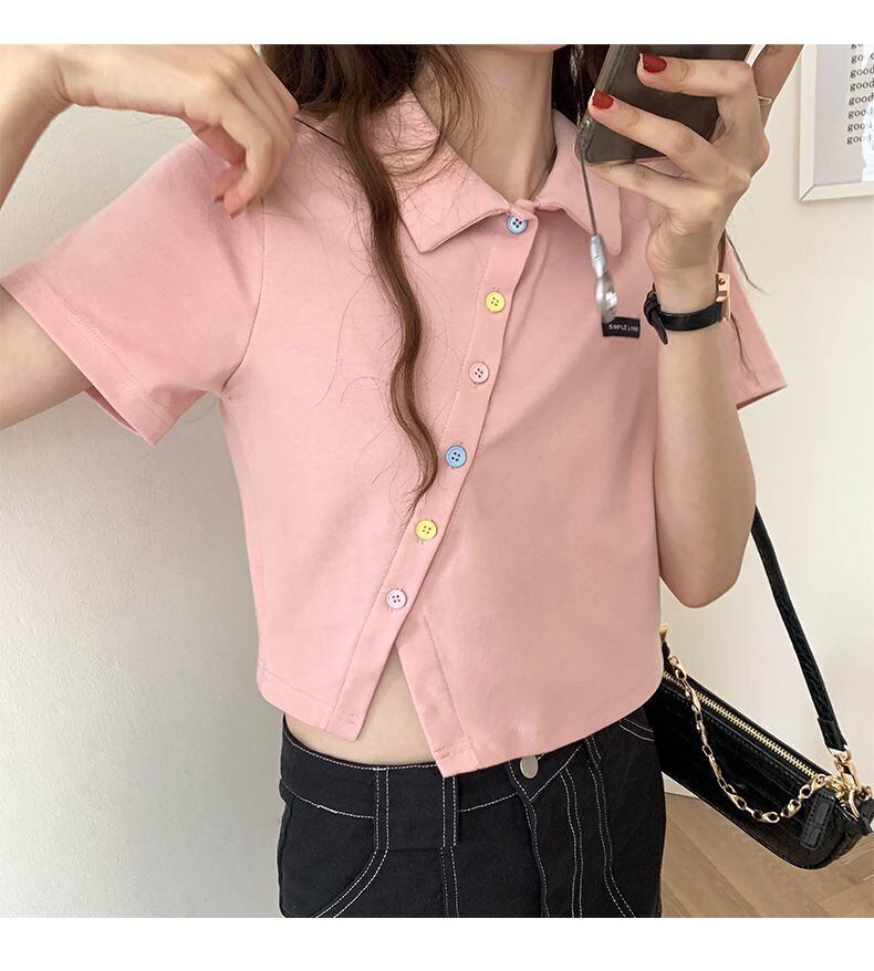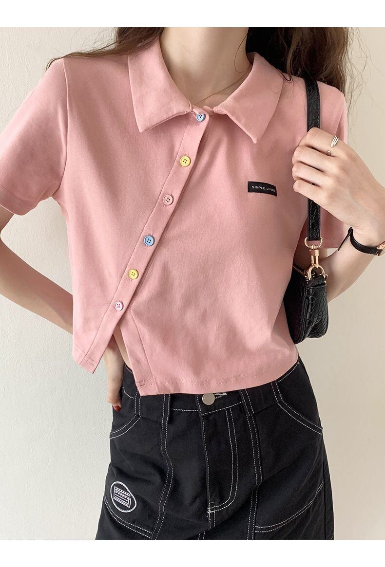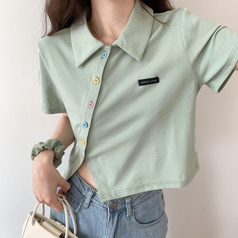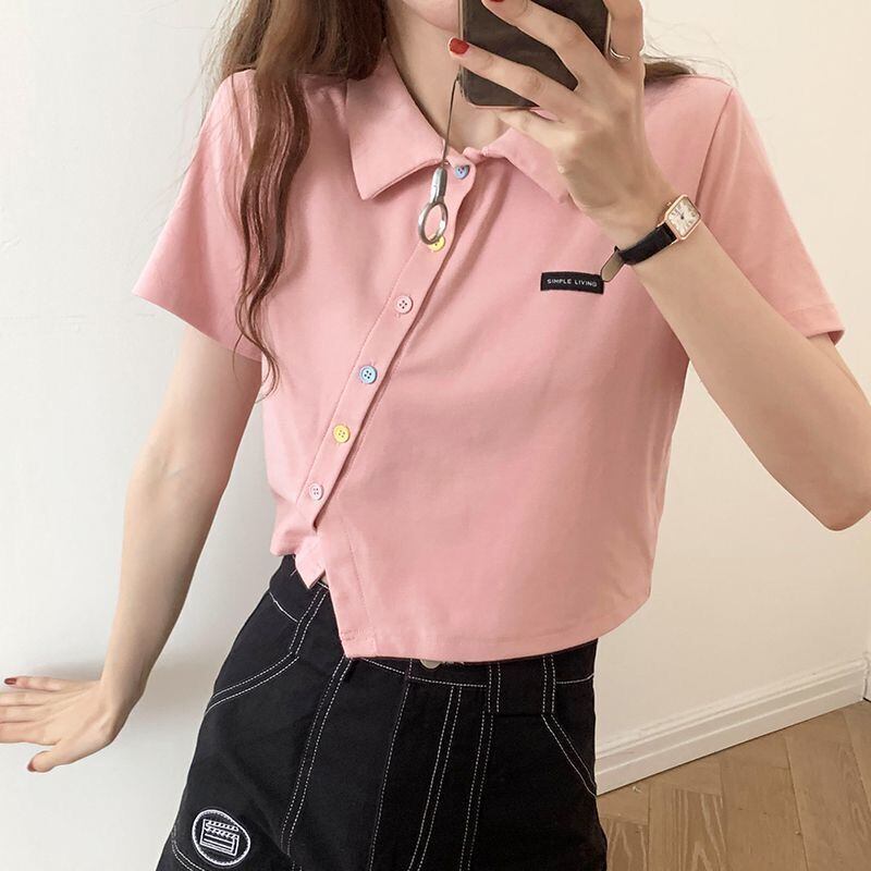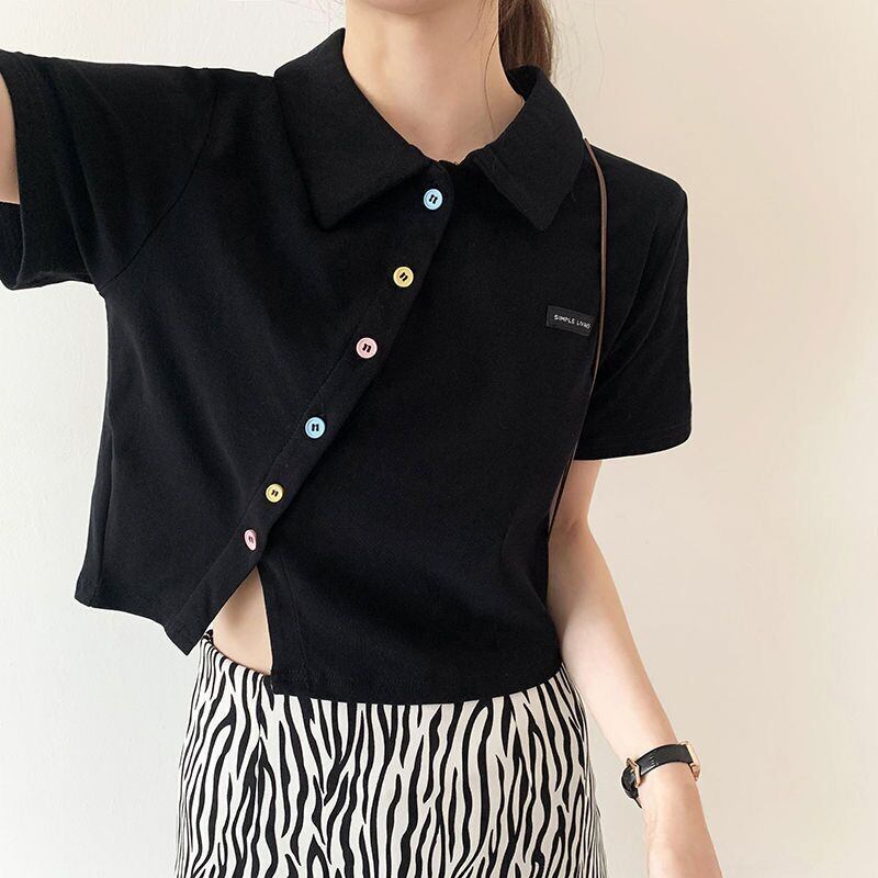 夏不規則なショート Tシャツ女性スリム固体かわいい服半袖 Tシャツクロップトップストリート Tシャツ ハーフスリーブ 大人ガーリー サマー 夏物 ソリッドカラー Aim584568605