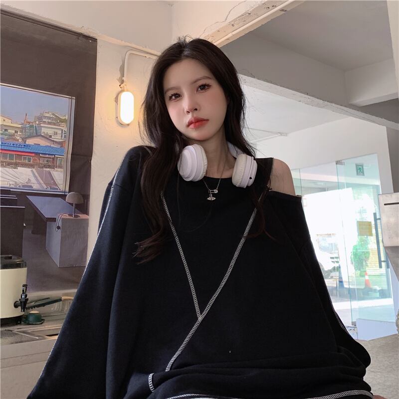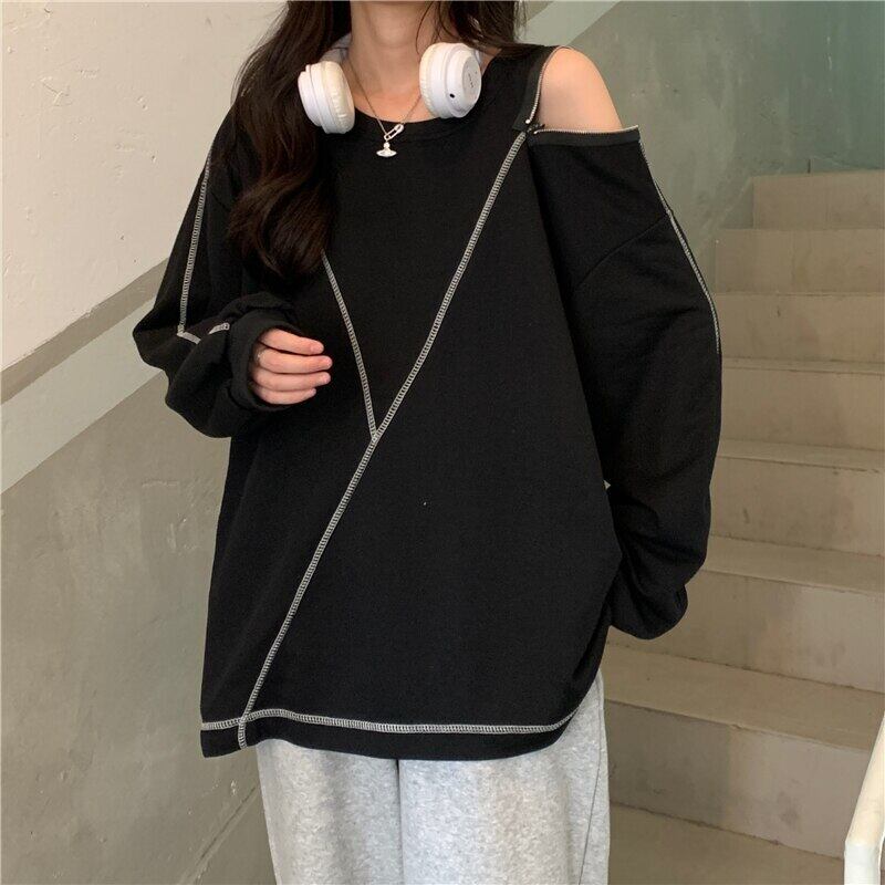パーカー女性原宿ストライプ薄いスウェットシャツ長袖ジッパー特大パーカー黒ストリートゴス y2k トップス女性服 ロング ブラック かわいい Aim94404026710