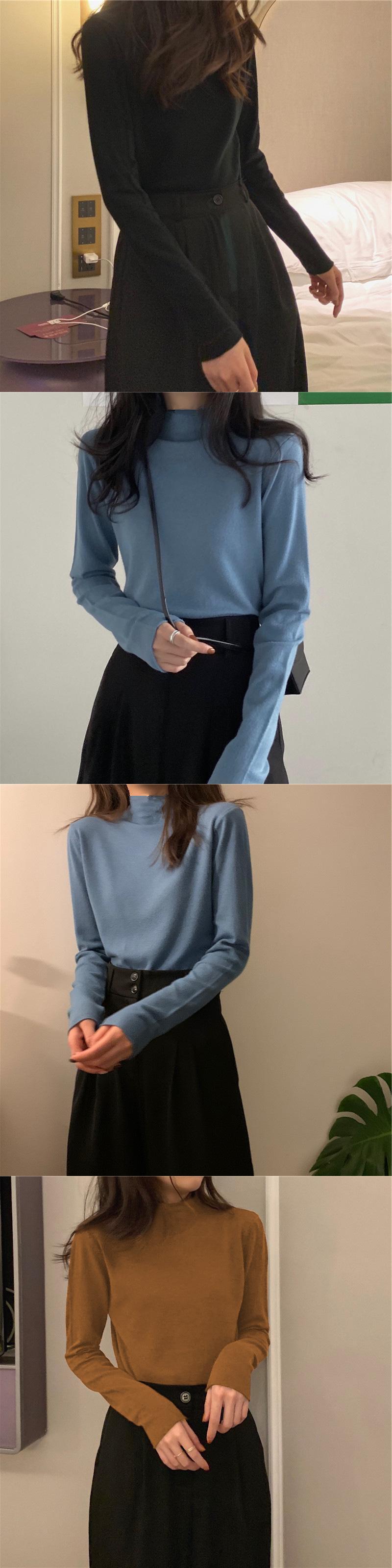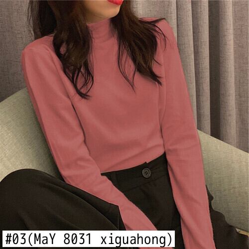 2022 秋黒、白固体女性長袖 Tシャツハーフタートルネック Tシャツスリム Tシャツ底入れシャツトップ ロング ホワイト ブラック オータム 秋物 ソリッドカラー Aim83288818666