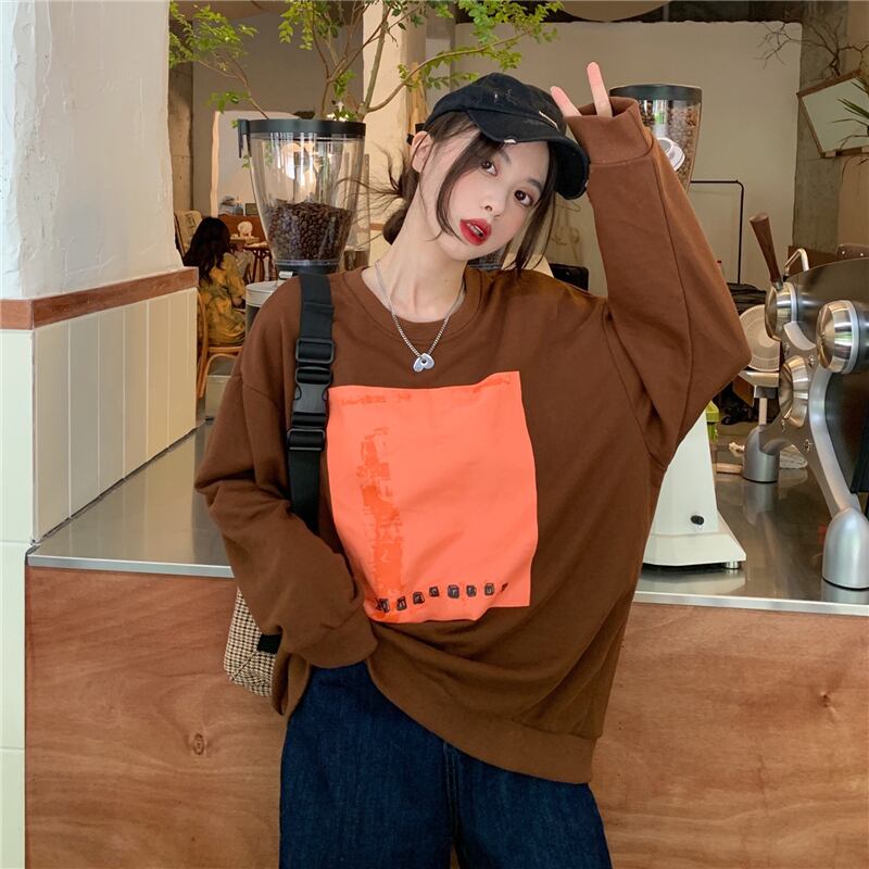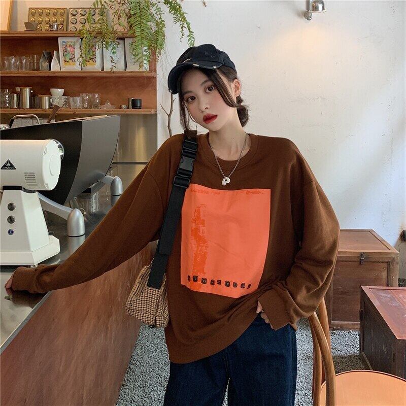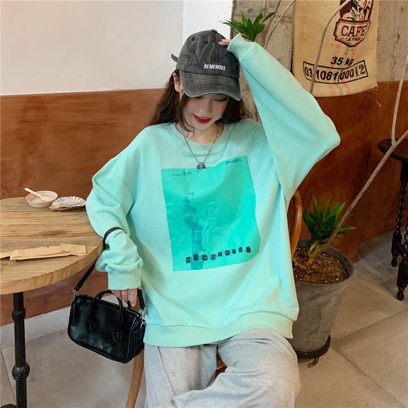 ヴィンテージ印刷特大パーカー原宿スウェット女性ストリートバギーヒップホップベーシックパーカー若いプルオーバー シャツ かわいい ビンテージ Aim23613717357