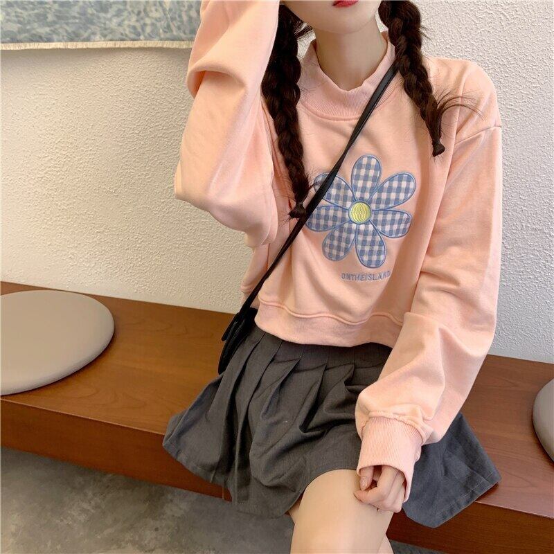 韓国の花の刺繍薄型スウェット若い原宿かわいいショートトレーナープルオーバー y2k 服パーカー女性 シャツ 大人ガーリー フラワーデザイン Aim93598558078