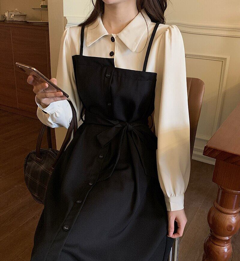 オールマッチミッドふくらはぎ緩いパッチワークパーティードレスフレンチスタイルロングスリーブかわいいボディコンドレス女性vestidos 長袖 大人ガーリー スウィート キュート カジュアル Aim30830801337
