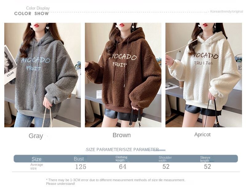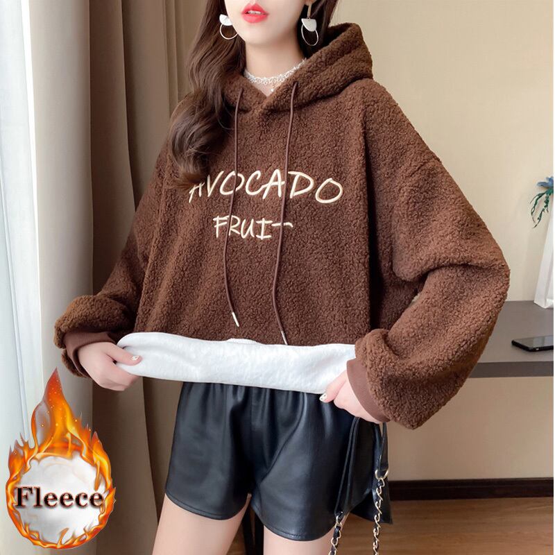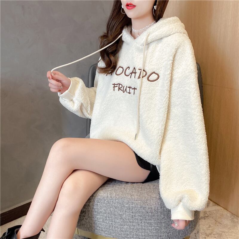 秋冬厚く暖かいパーカーコートベルベットカシミヤ女性パーカースウェットシャツ子羊フリース手紙プルオーバートップススウェット オータム 秋物 ウィンター 冬物 Aim577999940