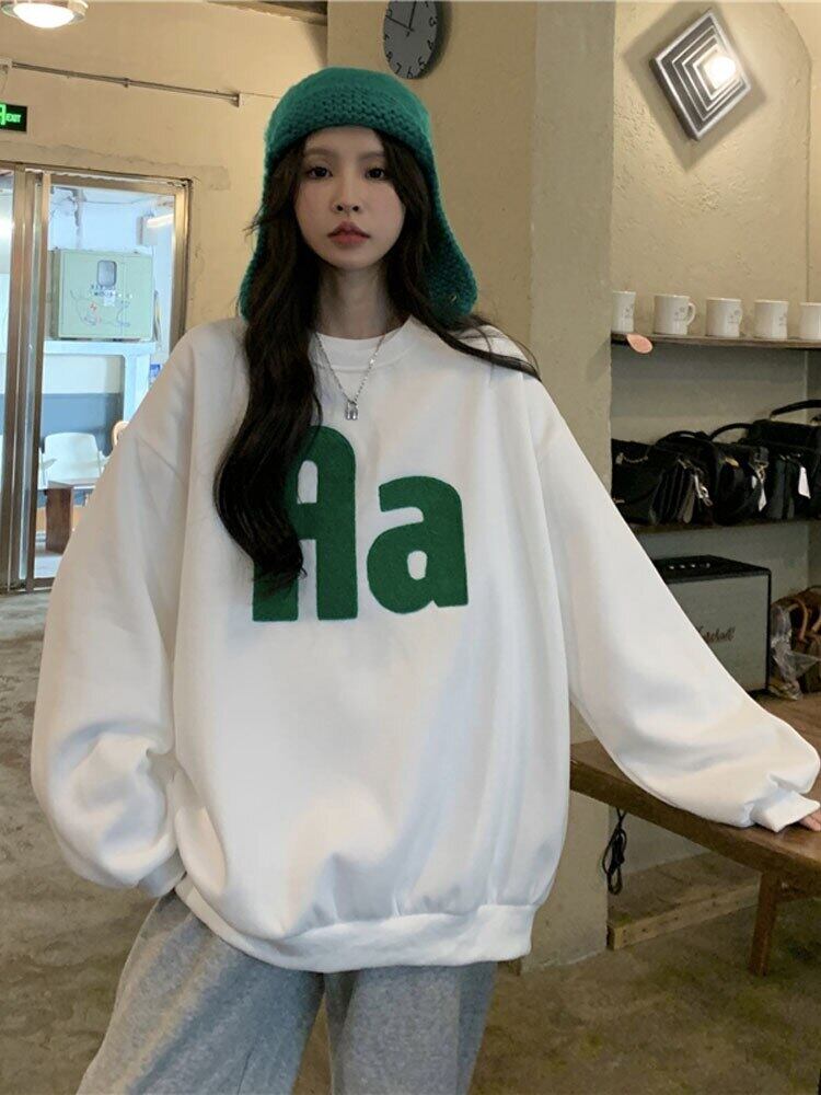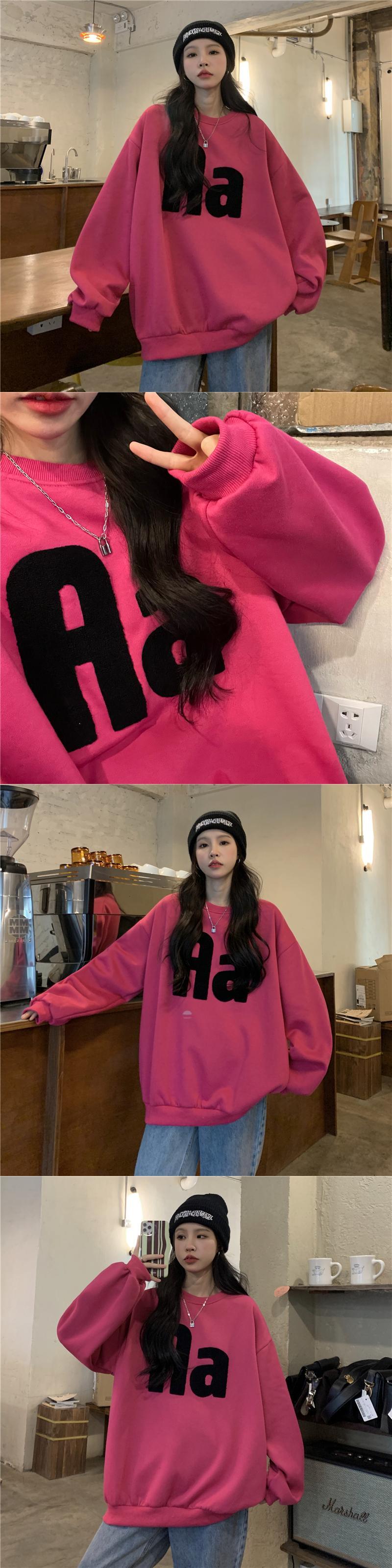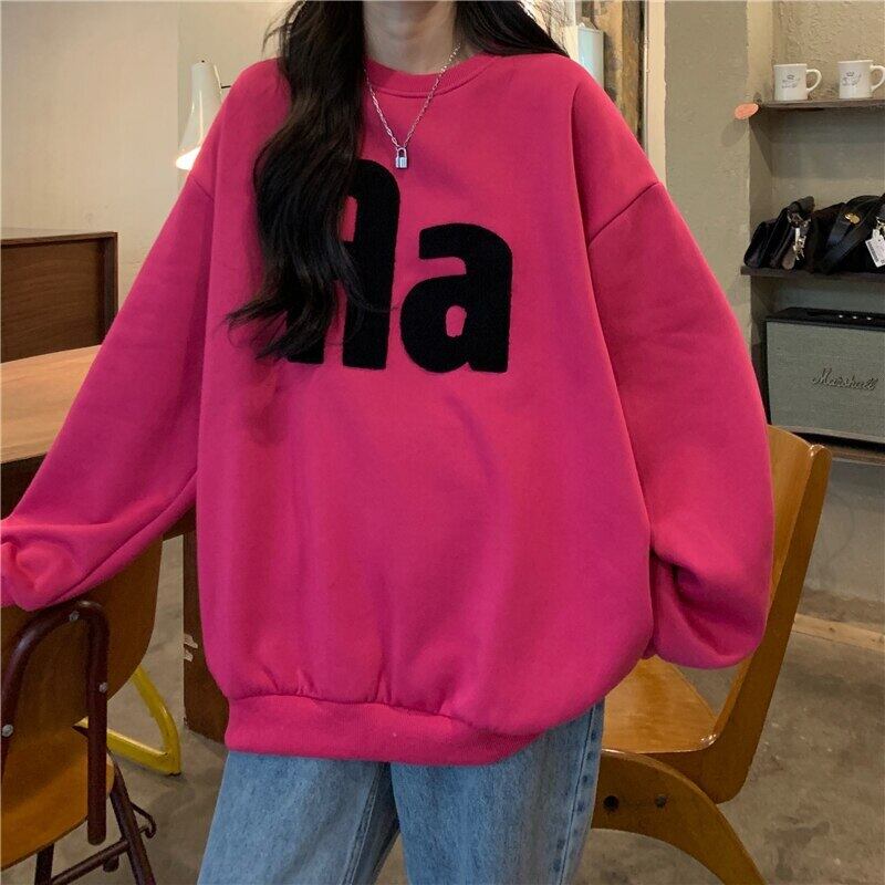 秋冬フリース厚み特大パーカー暖かい手紙刺繍クルーネックスウェットシャツ女性 y2k トップス若い女の子ストリート レッド オータム 秋物 ウィンター 冬物 Aim53345846154