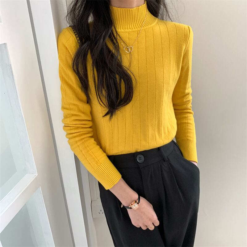 冬暖かいベルベットの女性スリムハーフタートルネックニットセーター原宿弾性長袖固体プルオーバーセーター ロング エラスティック 伸縮 かわいい ウィンター 冬物 ソリッドカラー Aim79439988648