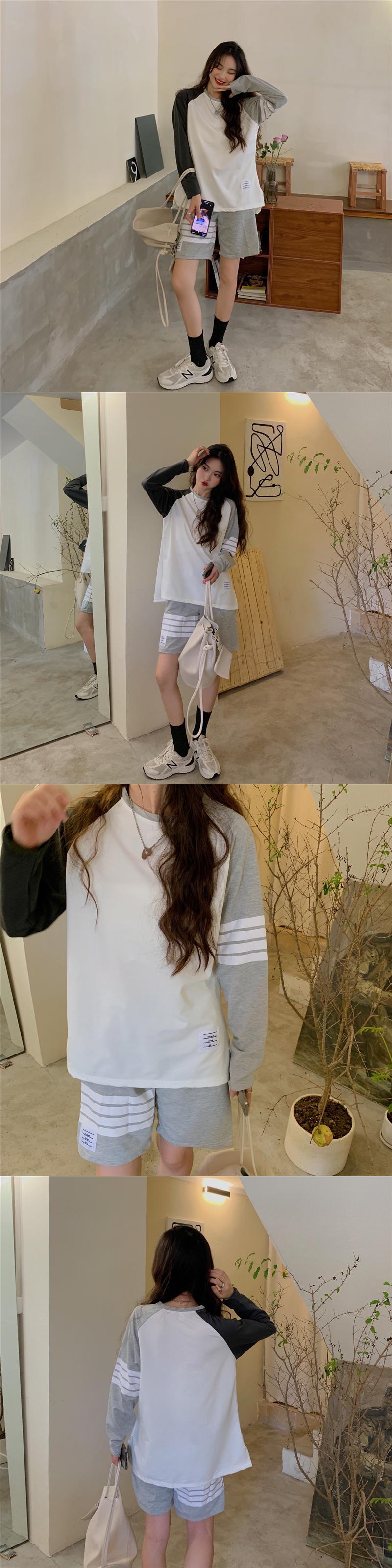 学生フルスリーブTシャツと5点パンツツーピースセットルーズ2ピースセットレディース衣装コットンスポーツウェアセット Aim82015397134