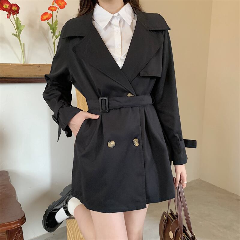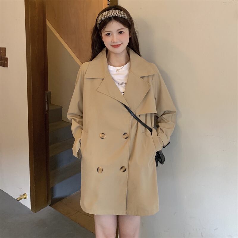 秋冬トレンチコート女性ソリッドダブルブレストミッドロングトレンチオーバーコートカジュアルルーズウインドブレーカー女性の上着 オータム 秋物 ウィンター 冬物 ソリッドカラー Aim59830401973