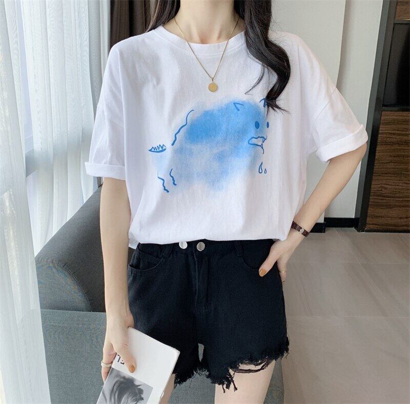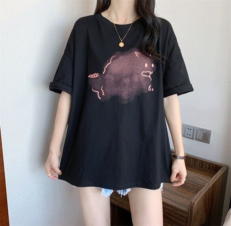 女性の Tシャツ原宿漫画プリント Tシャツ女性半袖黒、白のグラフィック Tシャツ夏韓国服 ショート ホワイト ブラック ハーフスリーブ かわいい サマー 夏物 Aim52932321856