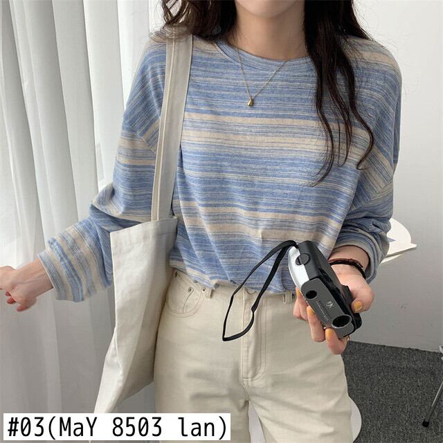 原宿ストライプ長袖レディース Tシャツ O ネック特大 tシャツ春秋グラフィック y2k トップス Tシャツ ロング かわいい スプリング 春物 オータム 秋物 Oネック Aim57512242715