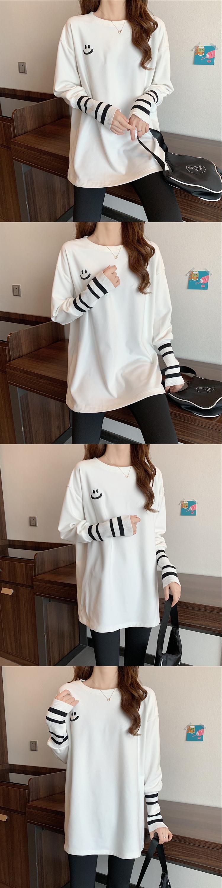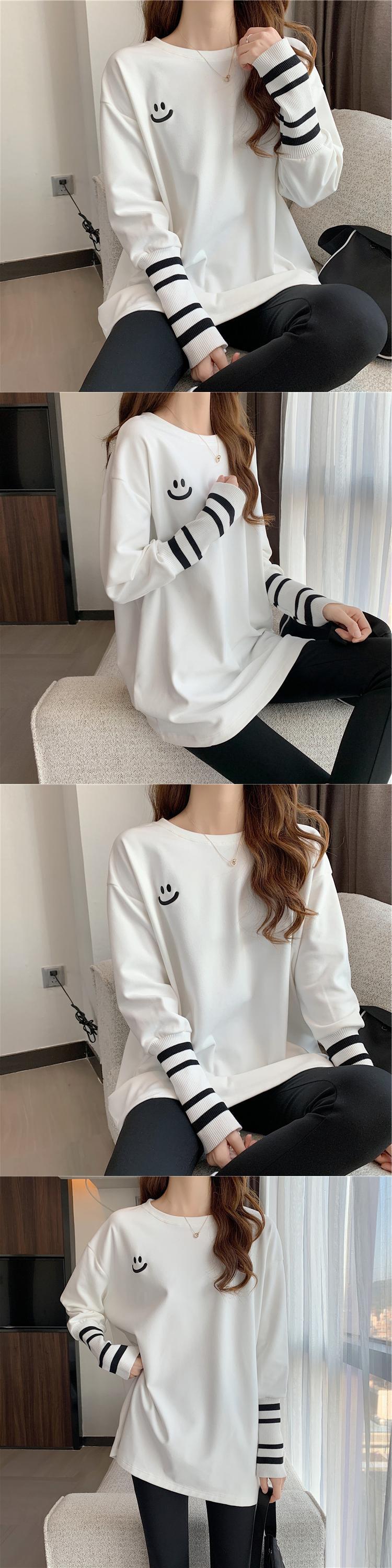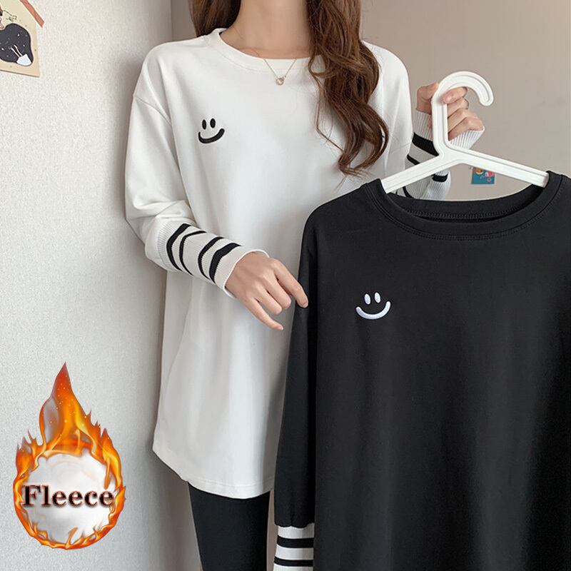 原宿特大厚く暖かい底入れ Tシャツ秋冬刺繍パッチワーク長袖 Tシャツ女性トップス ロング レッド かわいい オータム 秋物 ウィンター 冬物 Aim71685267257
