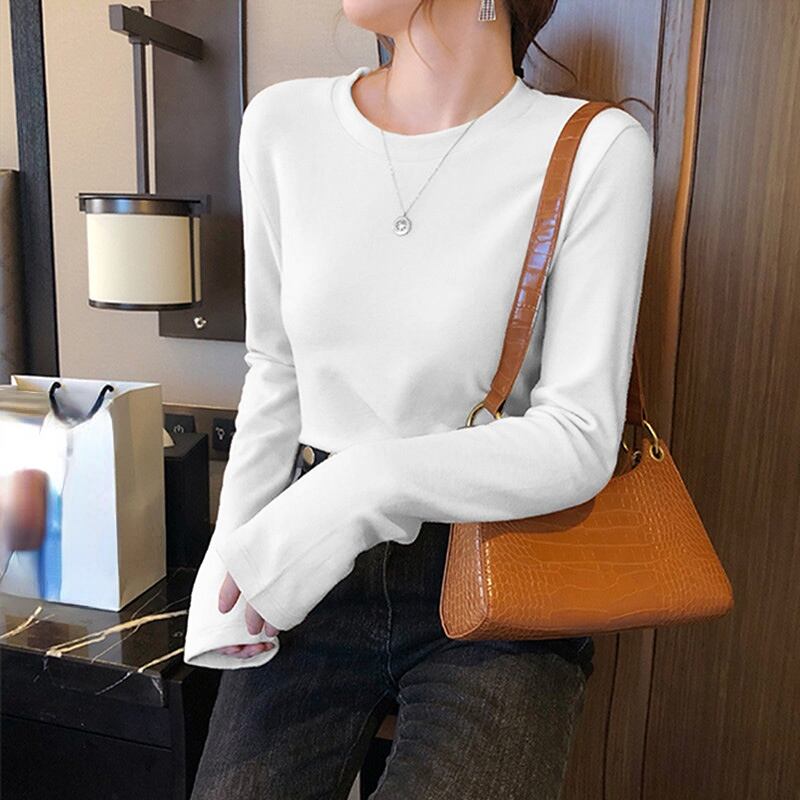 秋冬ベルベット長袖ソリッド Tシャツ女性原宿韓国 O ネックスリム暖かい厚みの底入れ Tシャツトップス ロング かわいい オータム 秋物 ウィンター 冬物 Oネック ソリッドカラー Aim13650299557