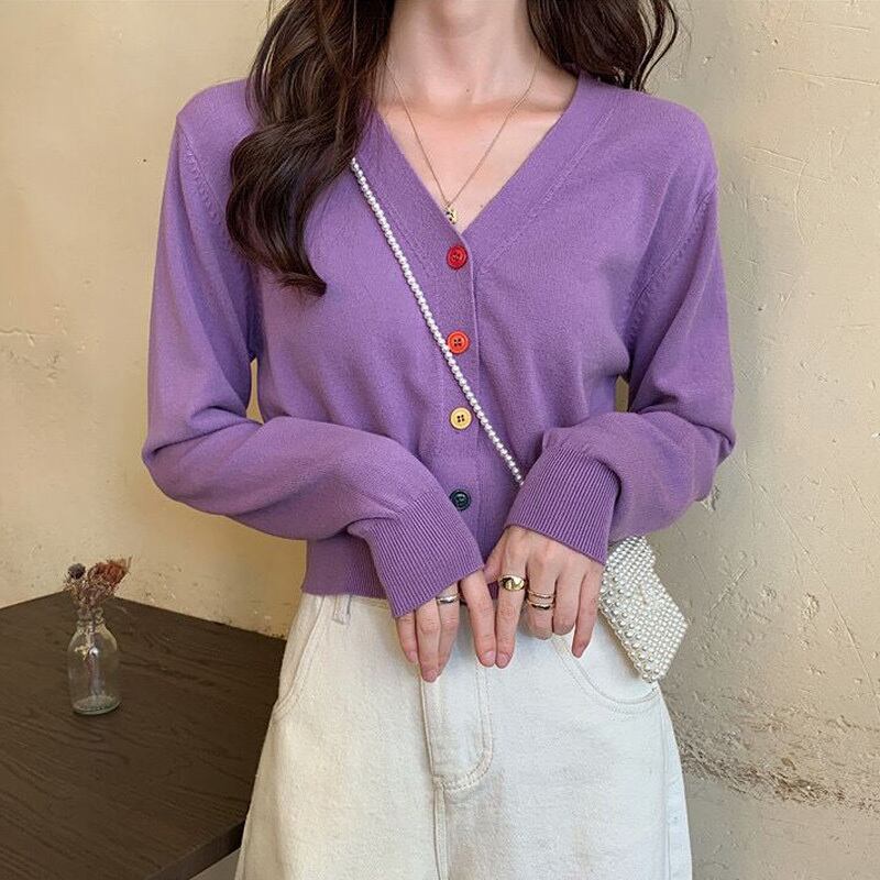 無地 ニット カーディガン 秋 長袖 カジュアル スリム シングルブレスト ニット セーター オールマッチ 薄手セーター y2k トップス ロング オータム 秋物 ソリッドカラー Aim28380351617