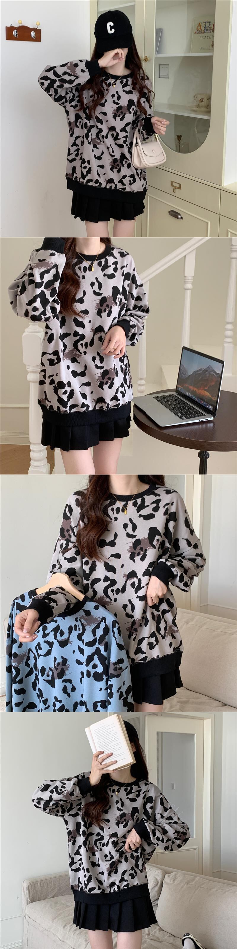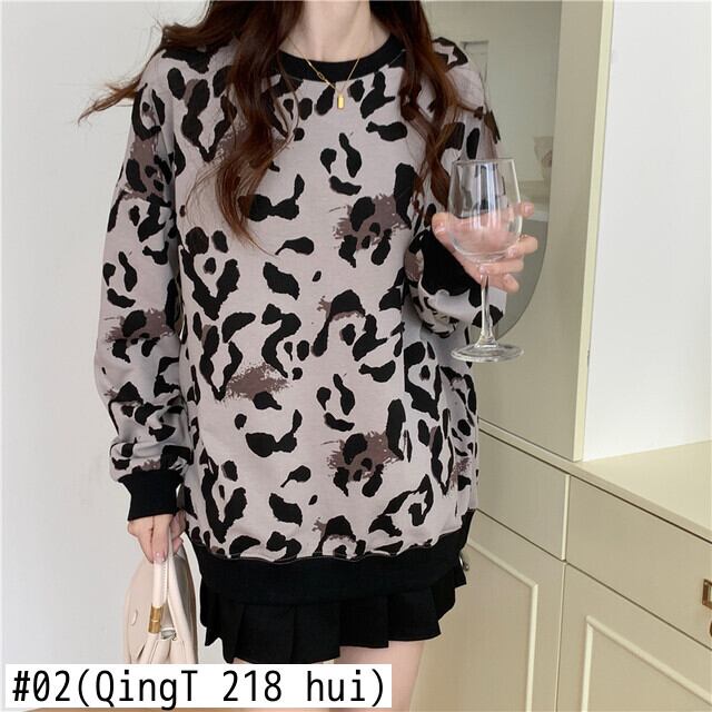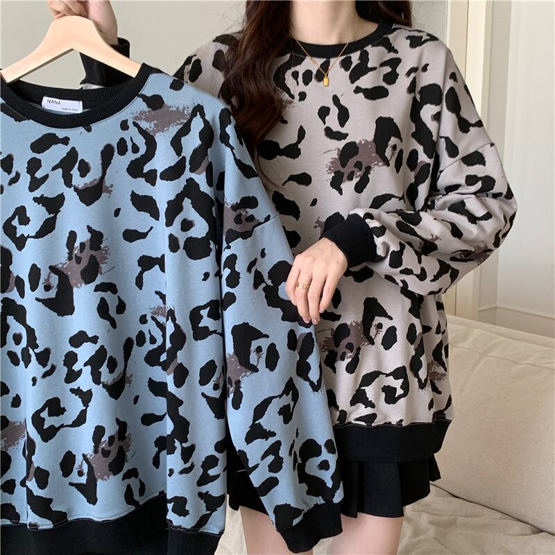 秋パーカー女性ヒョウ柄 o ネック薄型スウェットシャツ韓国長袖特大パーカー原宿ストリート k ポップ服 ロング かわいい オータム 秋物 Oネック Aim94611151985