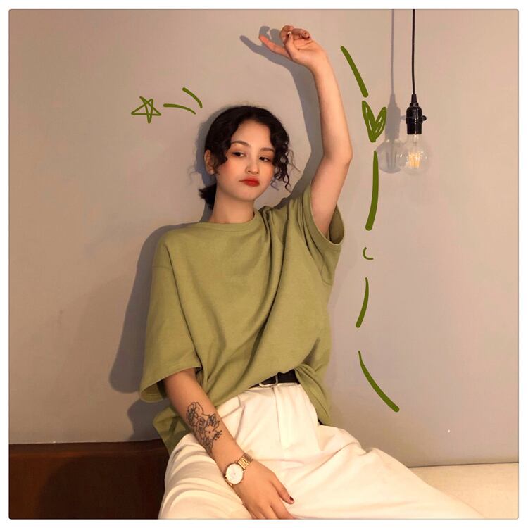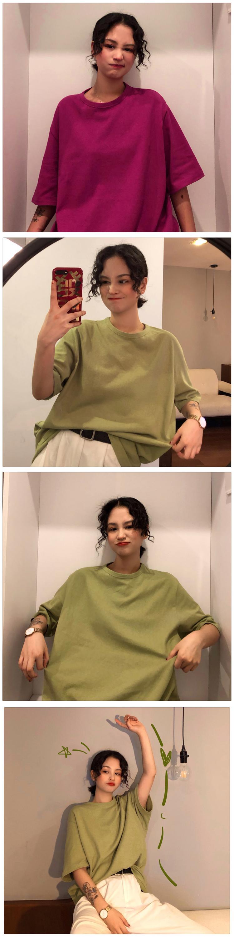 特大 Tシャツ 7 無地基本 Tシャツ女性原宿夏ロング白黒トップスヒップスター白 Tシャツ ホワイト ブラック かわいい サマー 夏物 ソリッドカラー Aim70083910619