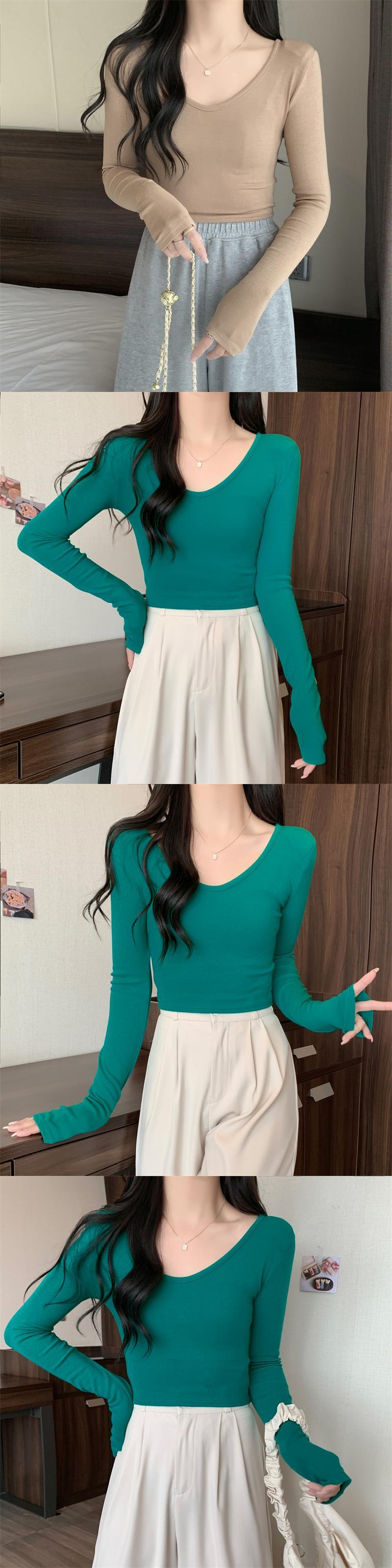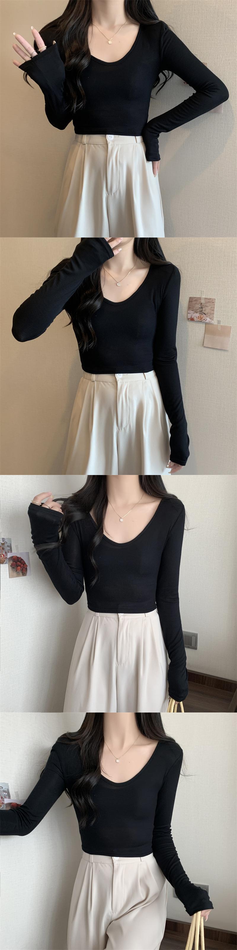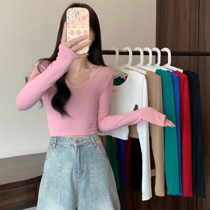 秋冬ベルベット Tシャツ女性原宿長袖固体スリム底入れ Tシャツ厚く暖かいクロップトップス女性服 ロング かわいい オータム 秋物 ウィンター 冬物 ソリッドカラー Aim63525272228