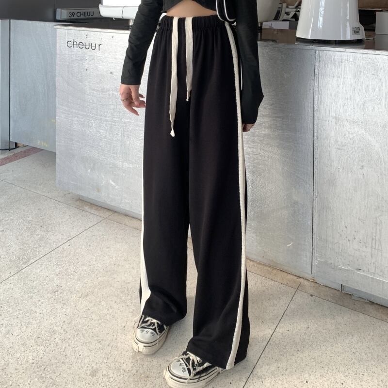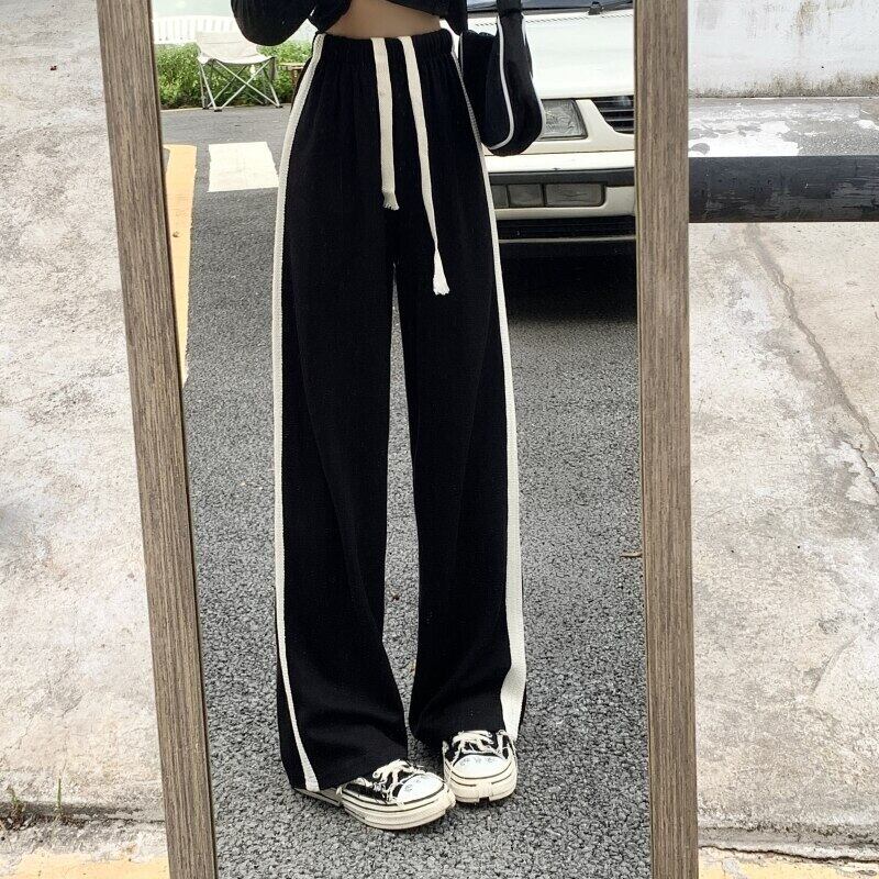 秋巾着スウェットパンツジョガー女性ワイドレッグパンツ固体パッチワークウエスト弾性女性 y2k パンツルーズ長ズボン ロング エラスティック 伸縮 オータム 秋物 ワイドパンツ ソリッドカラー Aim16818975682
