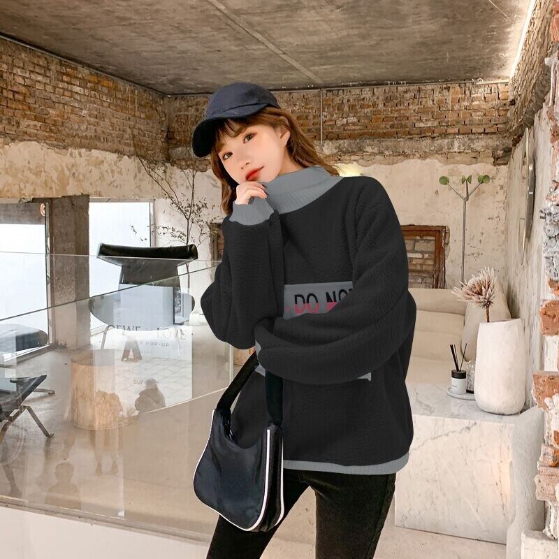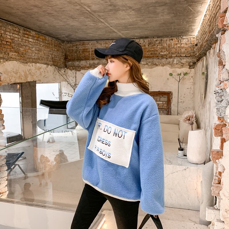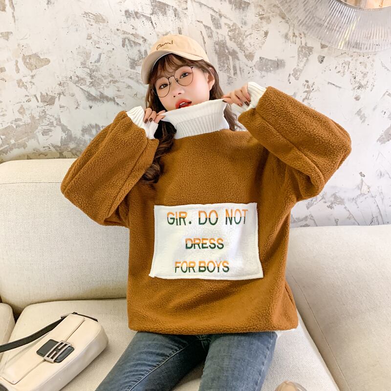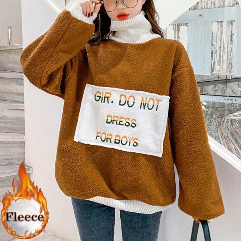 秋冬厚みの子羊フリース特大パーカー女性原宿手紙刺繍タートルネックカジュアルフルスリーブパーカー女性 かわいい オータム 秋物 ウィンター 冬物 Aim99628986142