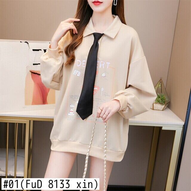 プレッピースタイル 特大 長袖 ネクタイ飾り パーカー レディース レタープリント 薄手 スウェット プルオーバー 服 学生 ロング シャツ Aim2342436716
