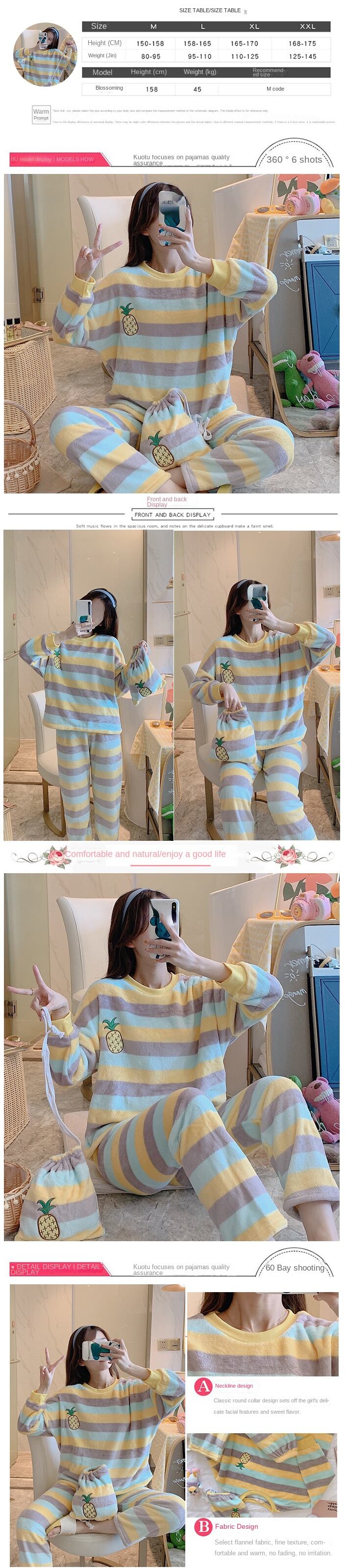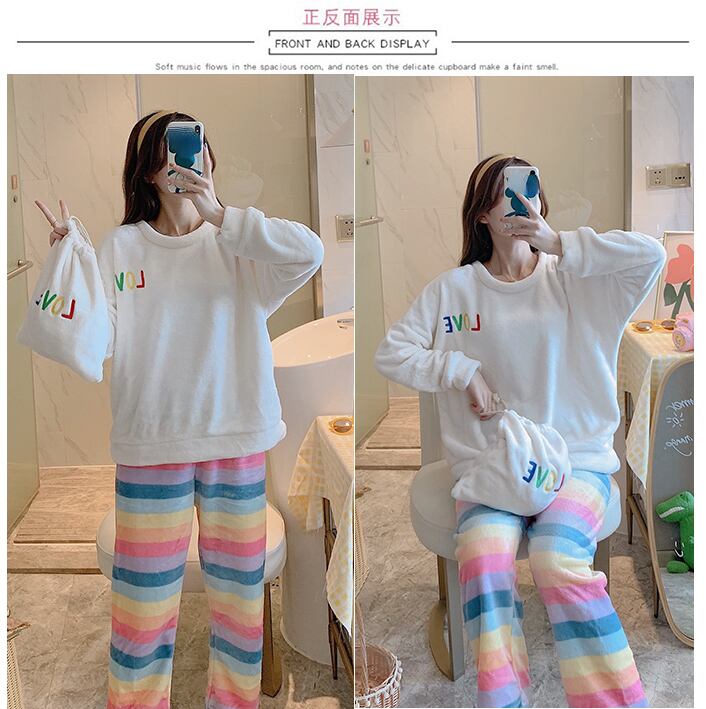 秋冬 3 点セットパジャマスーツ女性パジャマセット暖かいフランネル長袖スパースターセットホームウェア服 ロング オータム 秋物 ウィンター 冬物 Aim25284851375