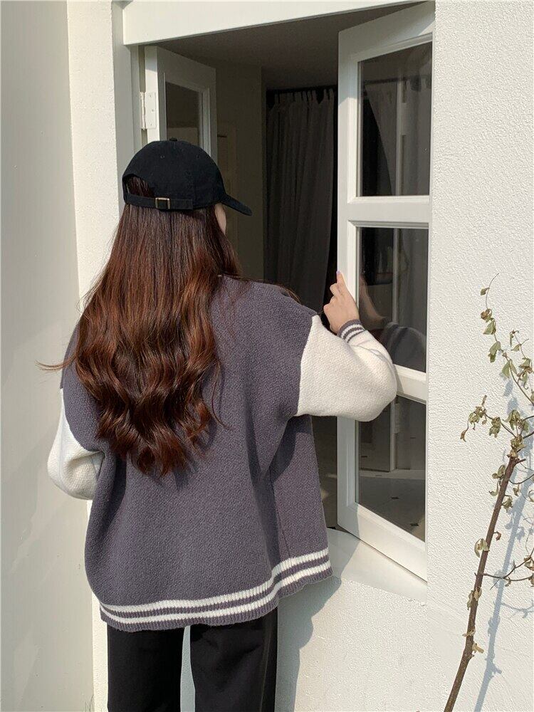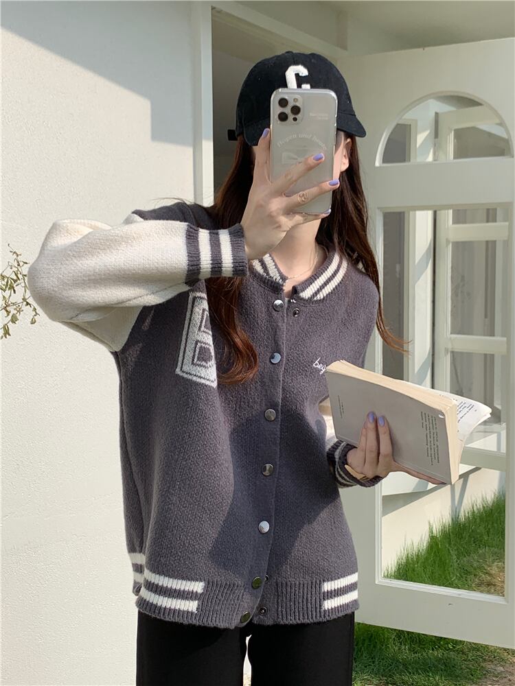 秋冬ニット野球上着女性のセータージャケット緩いレトロシングルブレストカーディガンニットトップス オータム 秋物 ウィンター 冬物 Aim57141365173