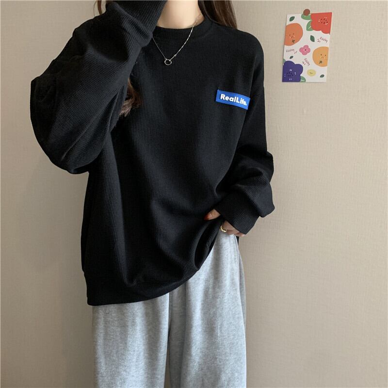 原宿手紙薄型スウェットシャツ韓国ワッフルパーカー女性長袖特大パーカーストリートゴス y2k トップス女性服 ロング かわいい Aim9598334790