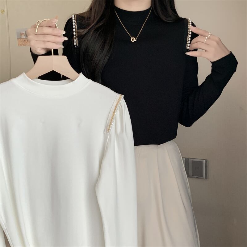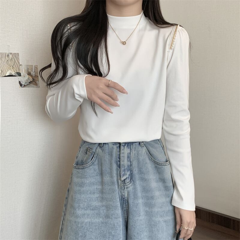 原宿長袖ソリッドハーフタートルネック緩い底入れ Tシャツ秋冬ベルベット Tシャツ女性厚く暖かいトップス ロング かわいい オータム 秋物 ウィンター 冬物 ソリッドカラー Aim592271796