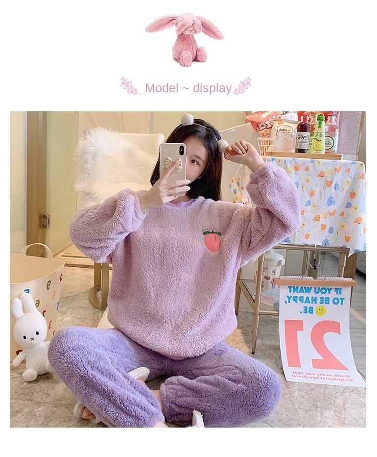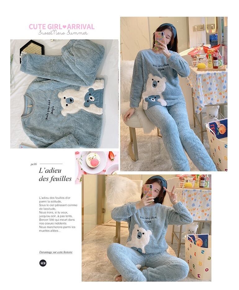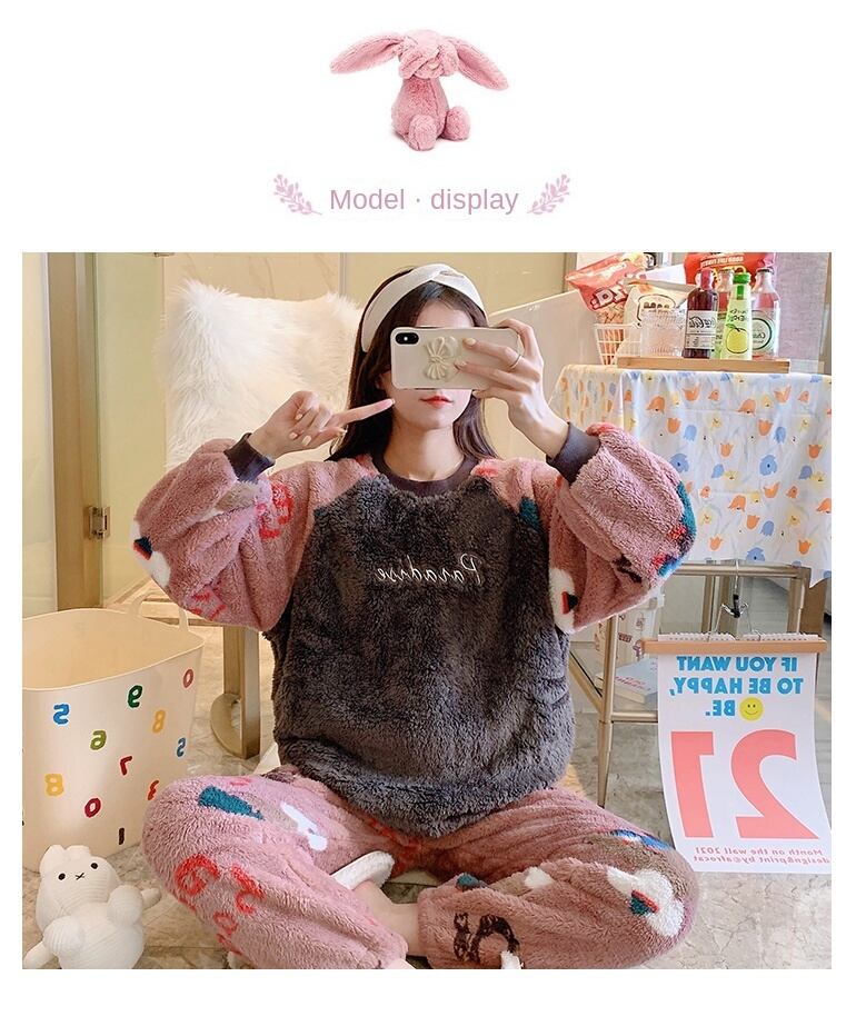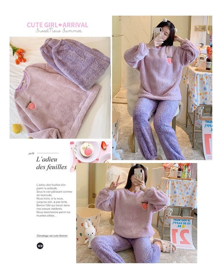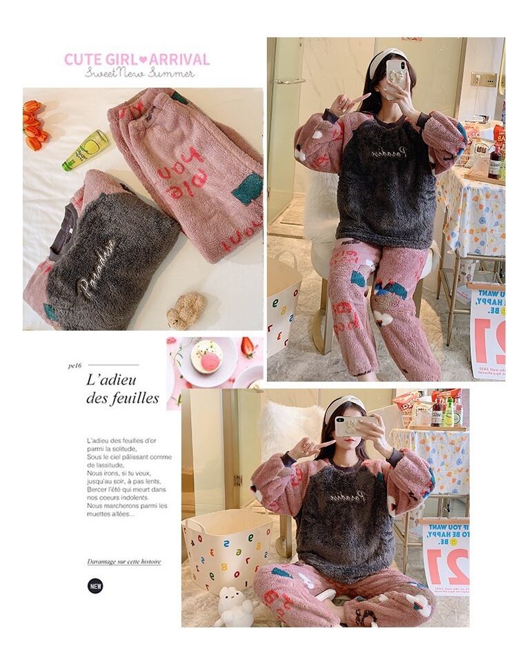 秋冬ゴールドベルベットパジャマ女性のフランネル暖かい長袖パジャマセット韓国かわいいレジャー女性パジャマセットホームウェア ロング 大人ガーリー スウィート キュート カジュアル オータム 秋物 ウィンター 冬物 Aim81111470125