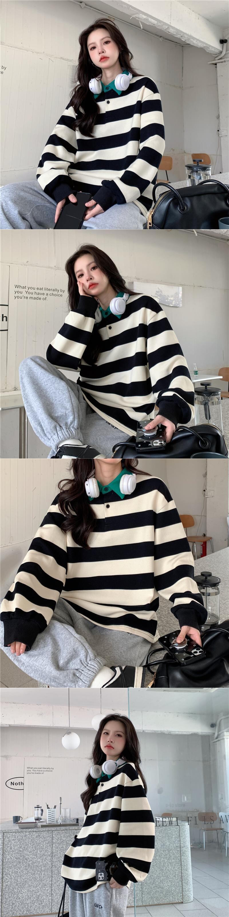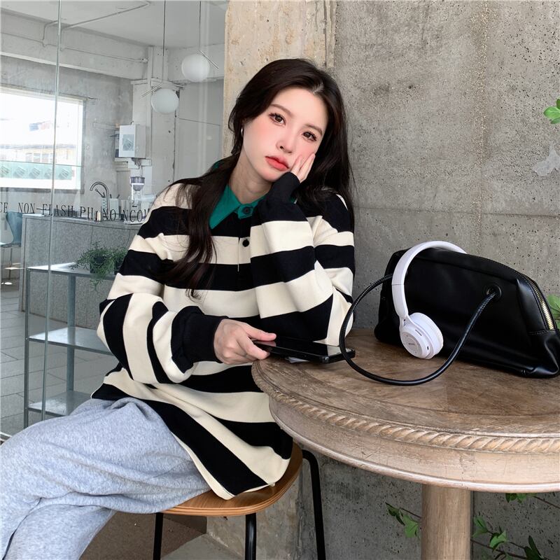原宿ストライプ薄いトレーナープレッピースタイル全試合パーカー女性長袖特大ストリート y2k トップス女性服 ロング かわいい Aim39301424119