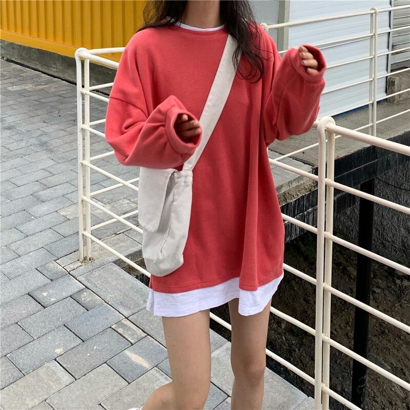 偽ツーピースパーカー女性 y2k 服長袖固体薄型スウェット原宿特大パーカーゴストップス服 ロング シャツ かわいい ソリッドカラー Aim90127748958