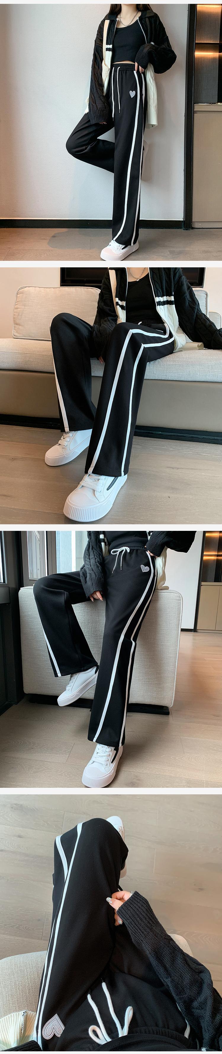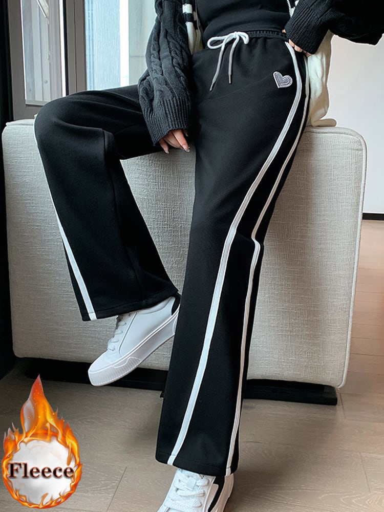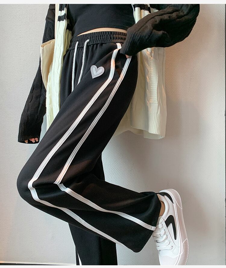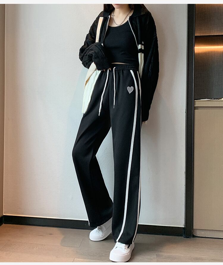 ジョギング女性黒グレースウェットパンツ秋冬厚いワイドレッグパンツウエストベルベットフリースズボンスポーツストリート ブラック オータム 秋物 ウィンター 冬物 ワイドパンツ Aim70058536608