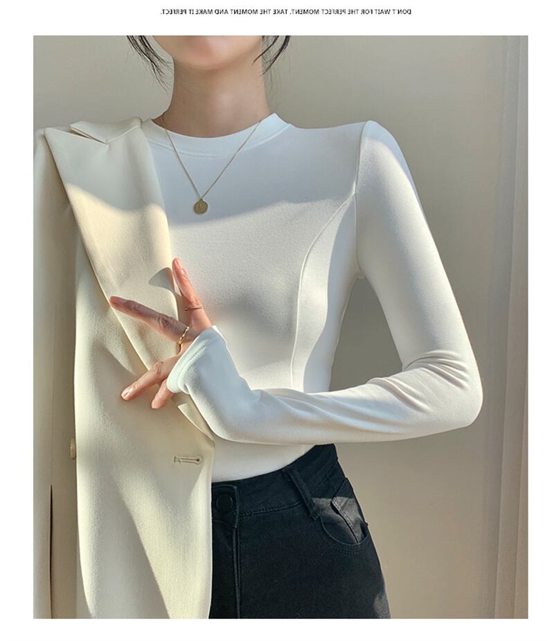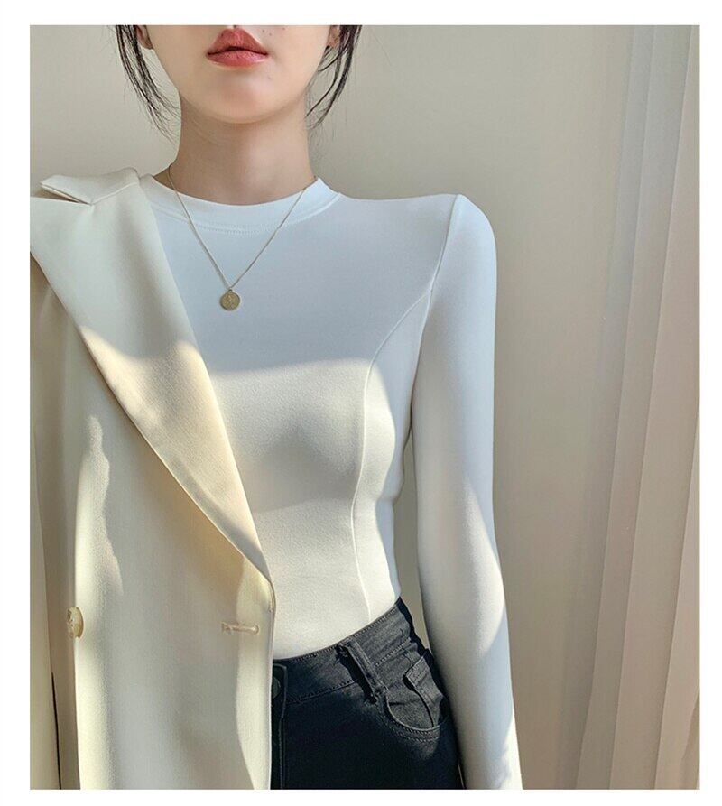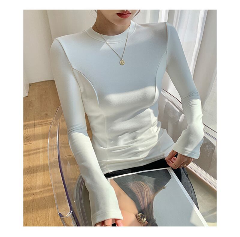 秋冬ベルベット長袖ソリッド Tシャツ女性原宿 O ネックスリム暖かい厚い底入れ Tシャツ白グレー y2k トップ ロング ホワイト かわいい オータム 秋物 ウィンター 冬物 Oネック ソリッドカラー Aim25996830051
