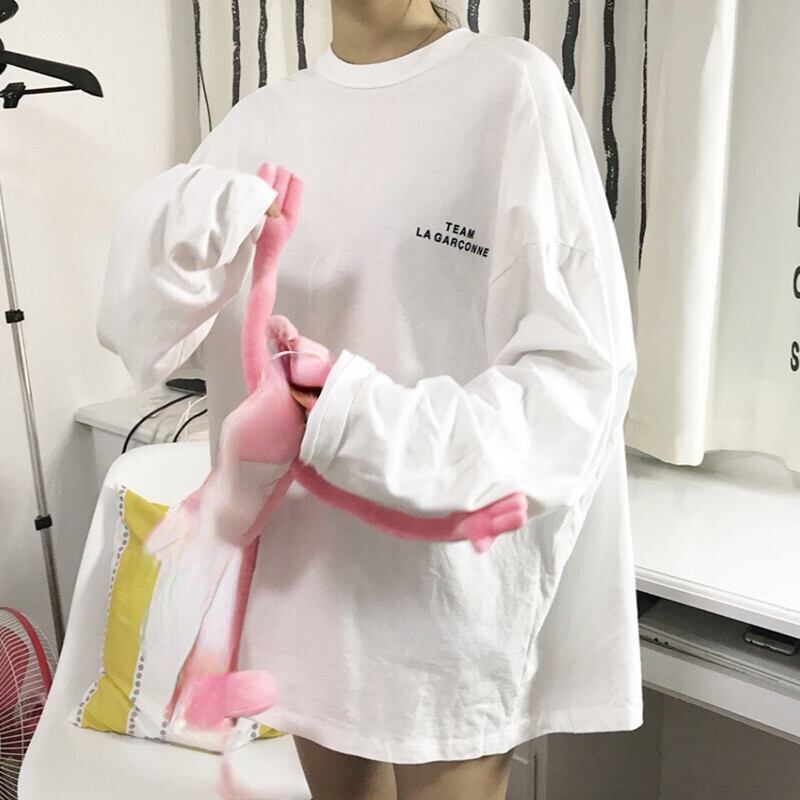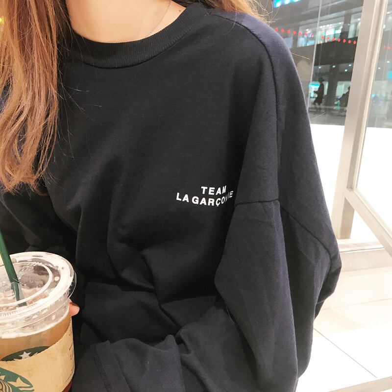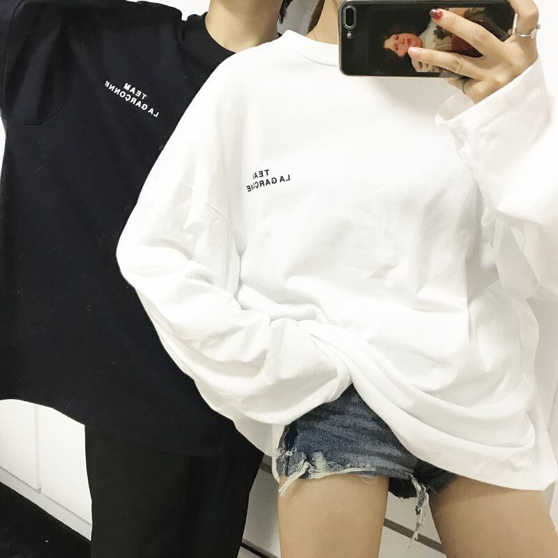 原宿 Tシャツ女性長袖ベーシック黒白トップスレタープリント特大オールマッチ tシャツユニセックスストリートウェア ロング ホワイト ブラック かわいい Aim47000322456