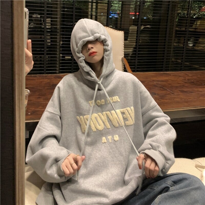 原宿綿特大パーカー韓国パーカー女性 y2k 服長袖手紙刺繍フード付きスウェットゴストップス ロング コットン シャツ かわいい Aim68622263958