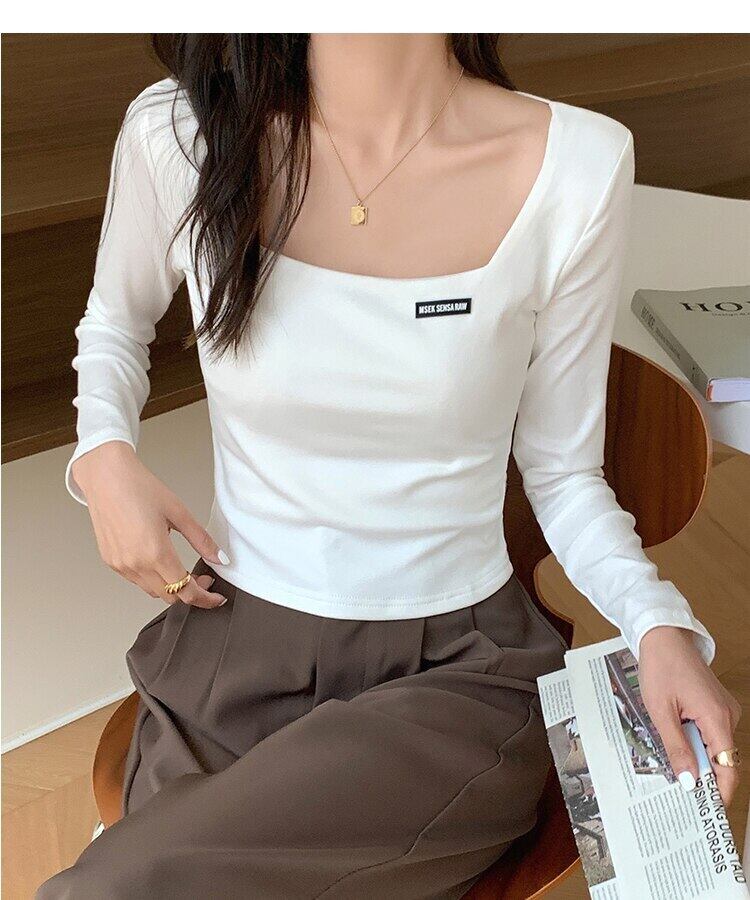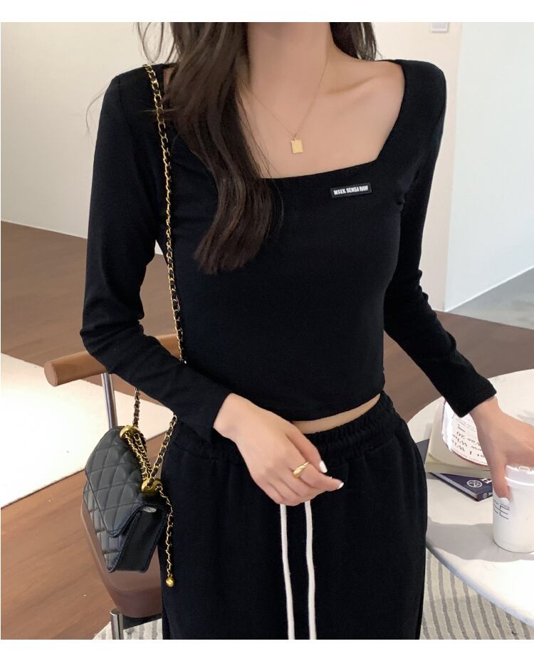 春純綿女性長袖 Tシャツ秋 Y2K 白黒トップスクロップトップセクシーなベーシック Tシャツ ロング ホワイト ブラック コットン スプリング 春物 オータム 秋物 ピュア Aim92523720591