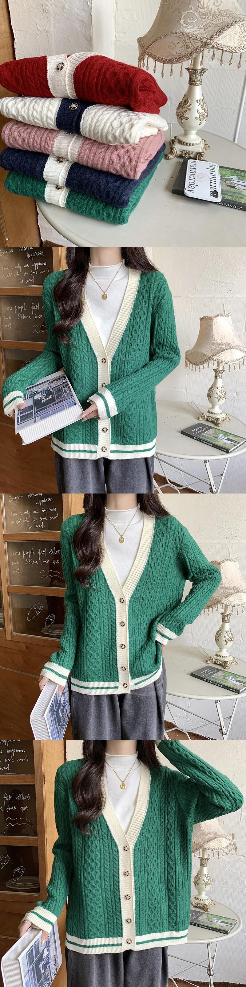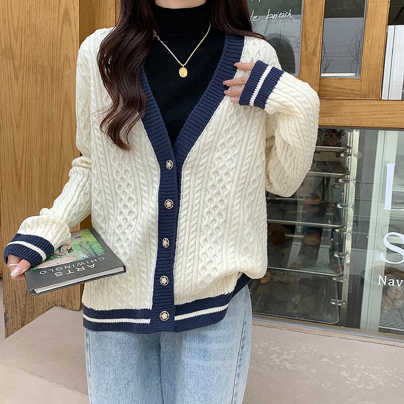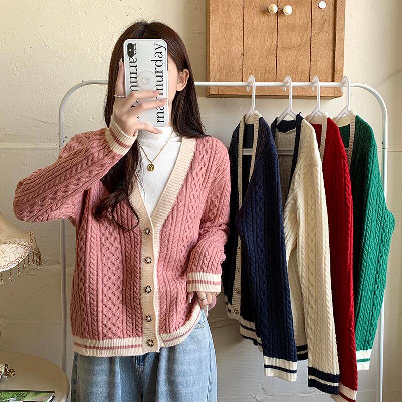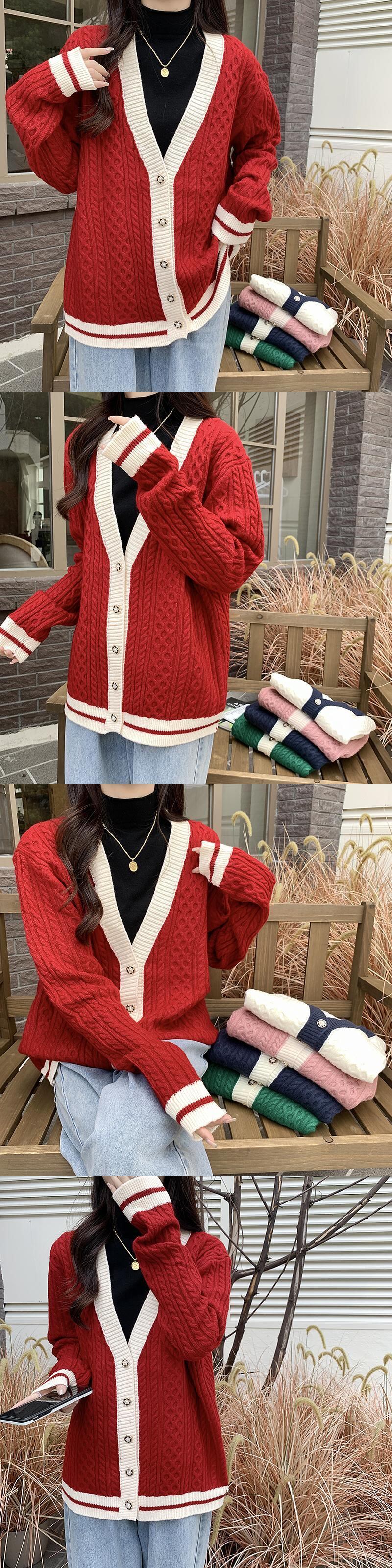 秋冬 V ネック女性シングルブレストカラーマッチング長袖セーターニット特大カーディガンジャンパー赤いコート ロング レッド オータム 秋物 ウィンター 冬物 Vネック Aim431240879