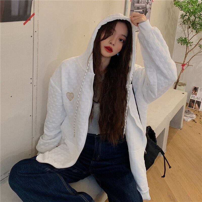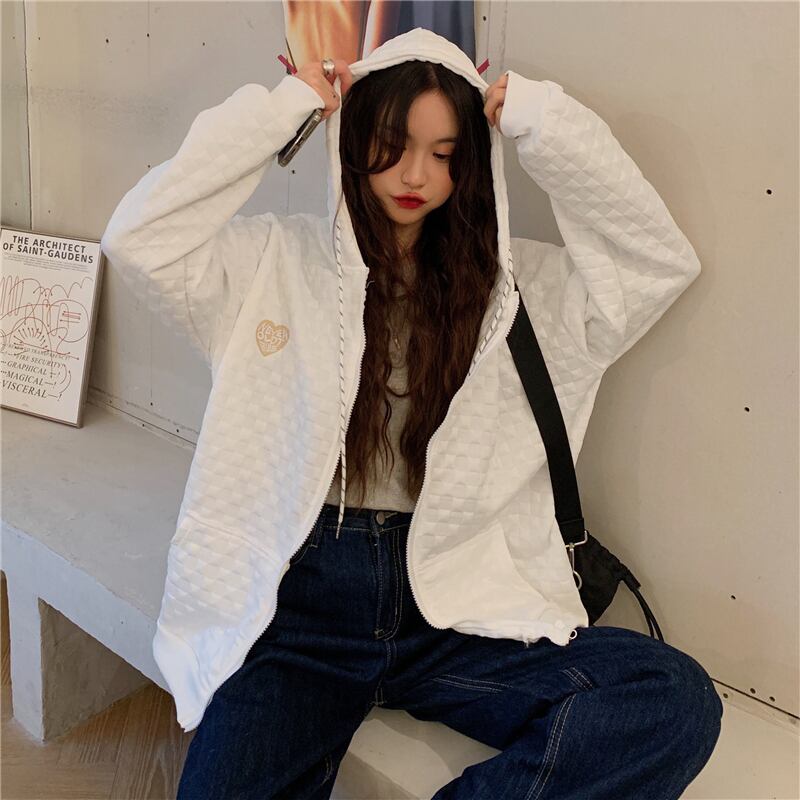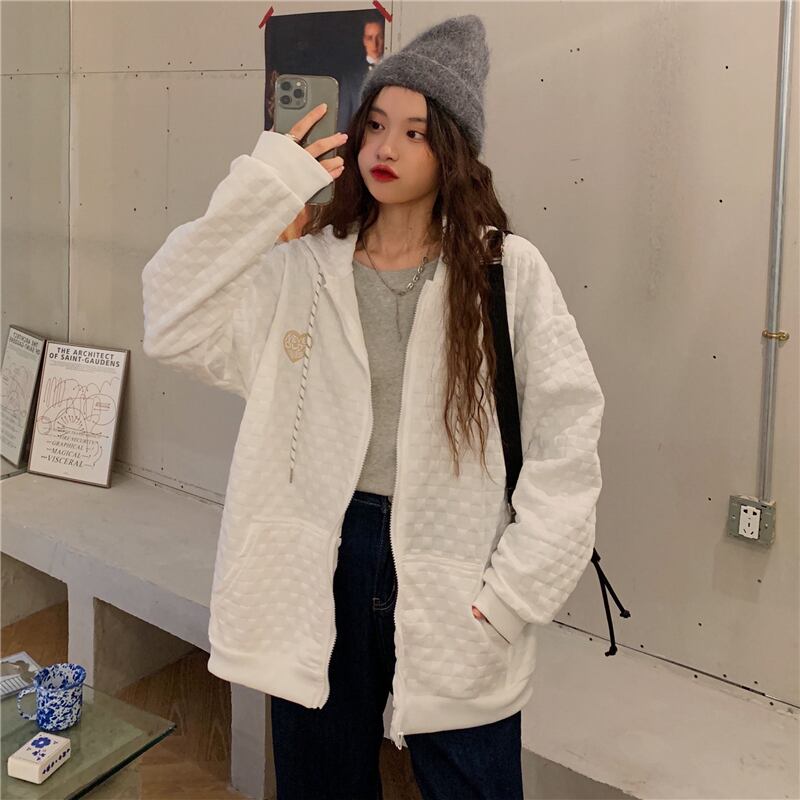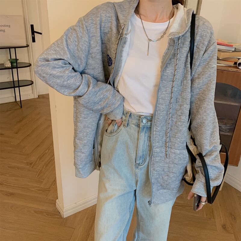 刺繍長袖特大フード付きスウェット韓国ジップアップコート女性パーカーポケットカーディガンジャケット y2k 服 ロング シャツ Aim22168708821