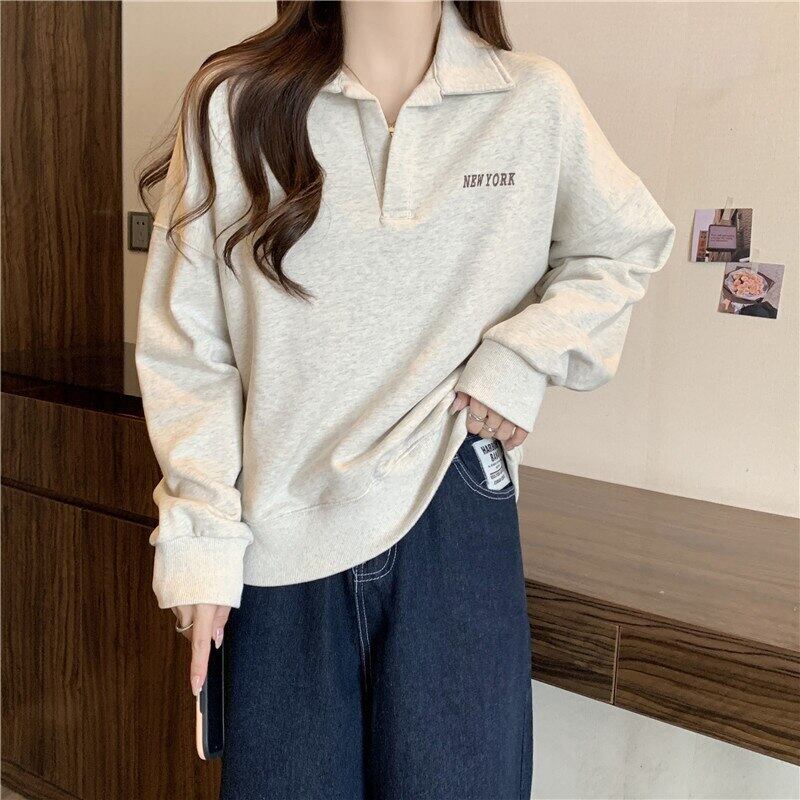 原宿ゴシックレタープリントパーカー女性秋長袖 V ネック薄型スウェットシャツカジュアルコットン特大パーカー y2k 服 ロング かわいい オータム 秋物 Vネック Aim14193505780