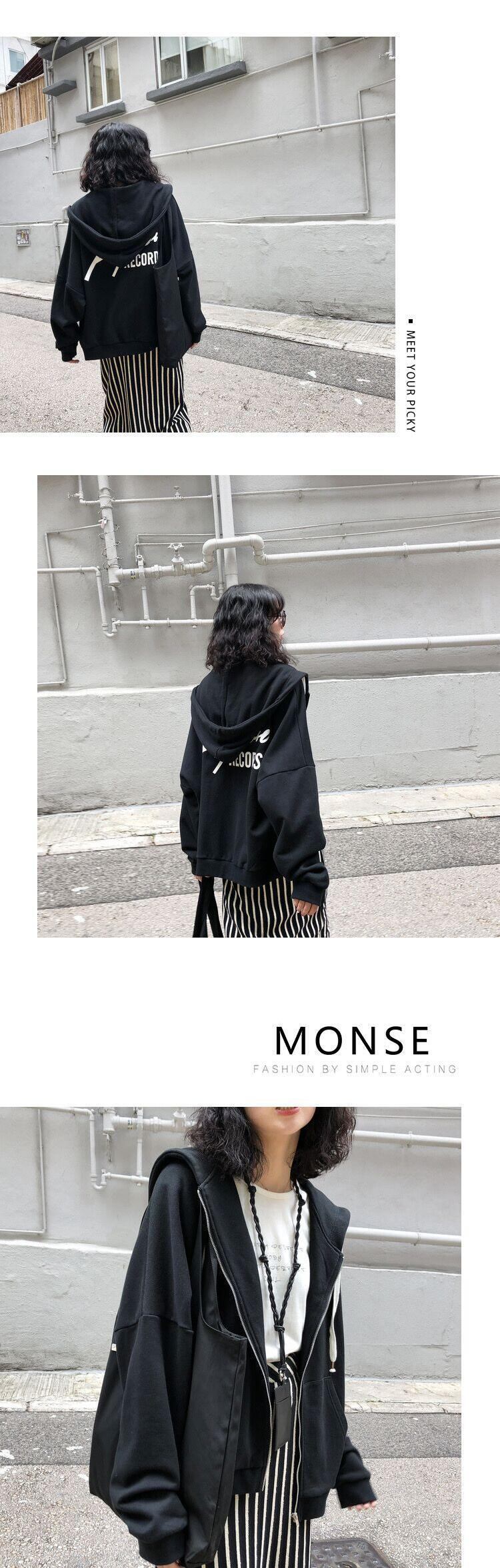 秋の手紙特大パーカー女性ジッパーコートスポーツウェアパーカー薄型トレーナーフード付きカーディガンジャケット Y2k オータム 秋物 Aim11874927270