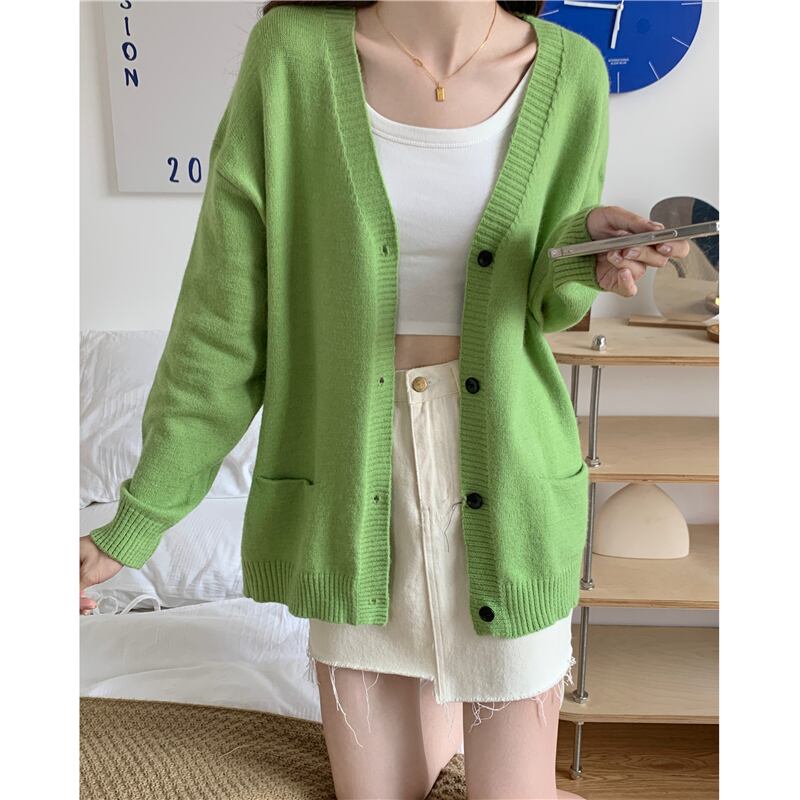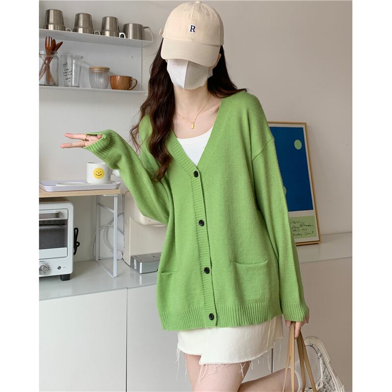 ニットセーターカーディガンコート女性秋冬 V ネックポケットセータージャケットルーズカーディガングリーントップス オータム 秋物 ウィンター 冬物 Vネック Aim78702336760