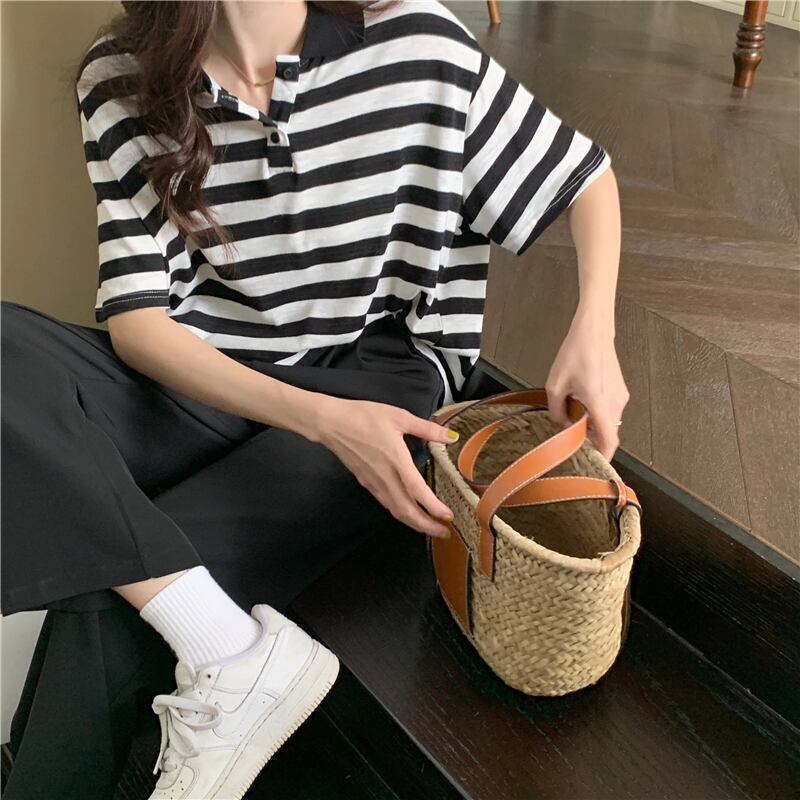 純綿スペルカラーストライプ Tシャツプレッピー全試合 Tシャツ女性半袖青黒トップス学生 Tシャツ ショート ブルー ブラック コットン ハーフスリーブ Aim36066987822