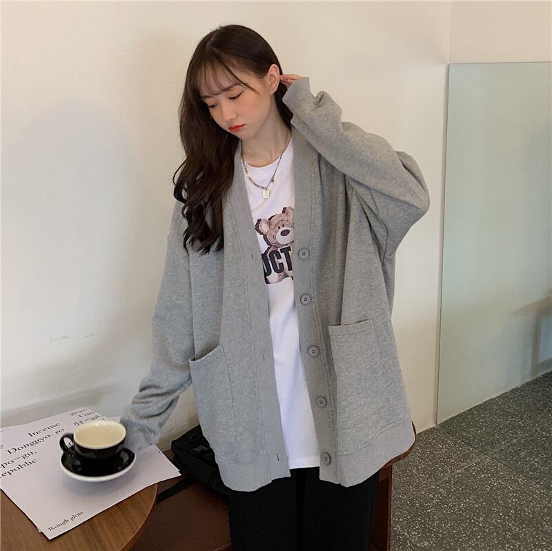 原宿パーカー女性固体 v ネック長袖特大スウェット y2k 服韓国カジュアルパーカーポケットカーディガンジャケット ロング シャツ かわいい Vネック ソリッドカラー Aim52451594076