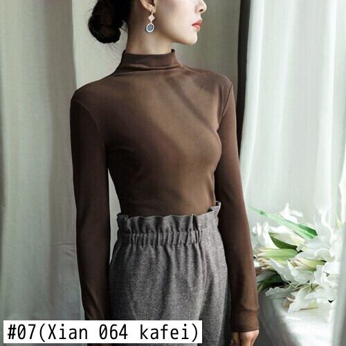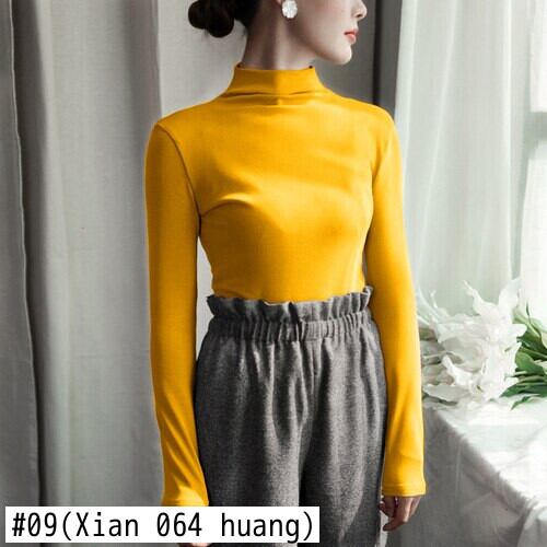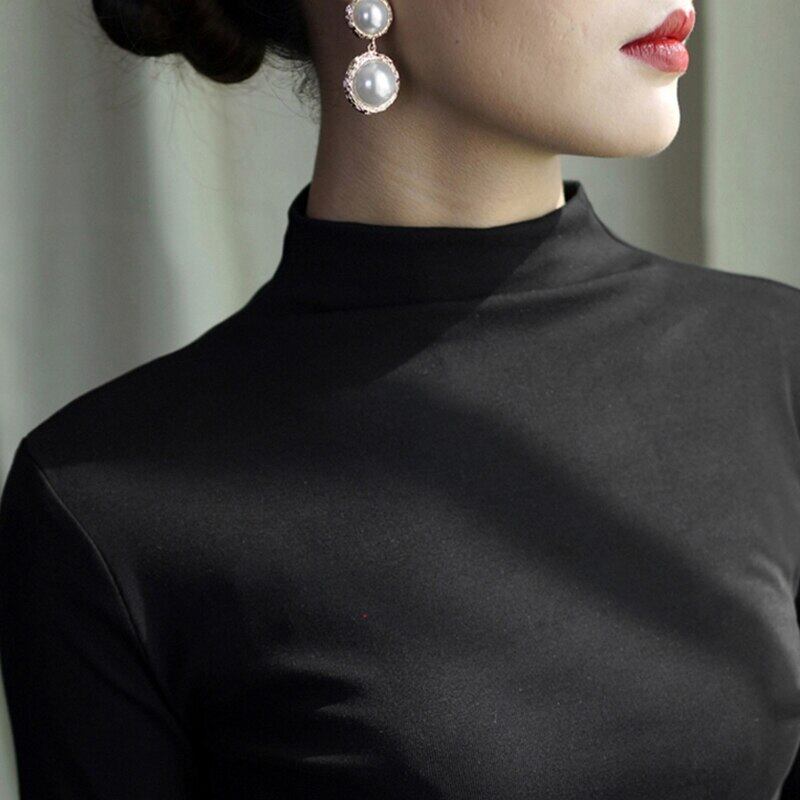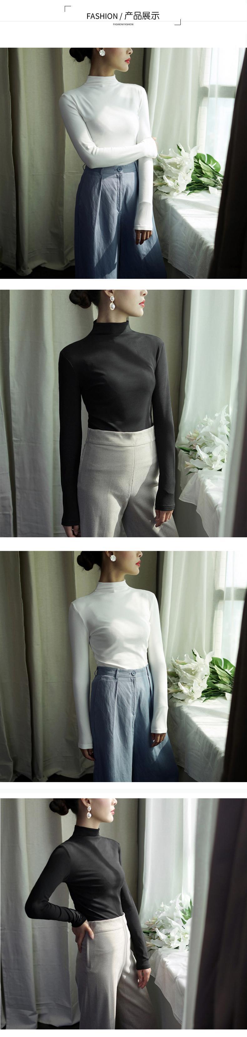 2021 秋冬厚く暖かい Tシャツ女性スリムハーフタートルネック固体女性 tシャツ長袖底入れ Tシャツ黒トップス ロング ブラック オータム 秋物 ウィンター 冬物 ソリッドカラー Aim26816860232
