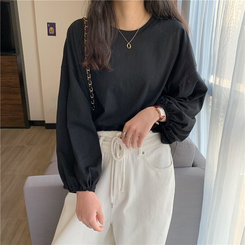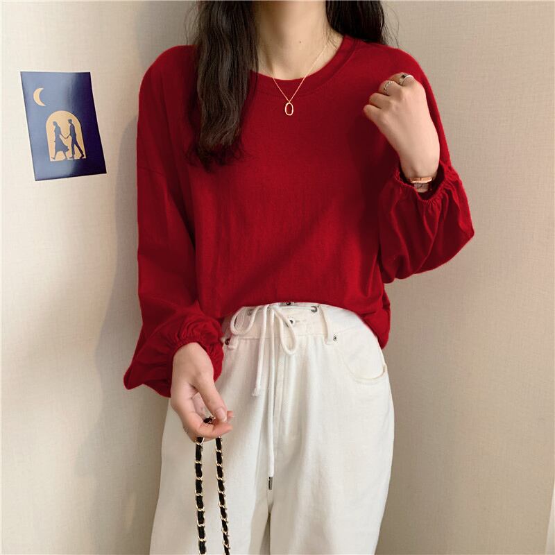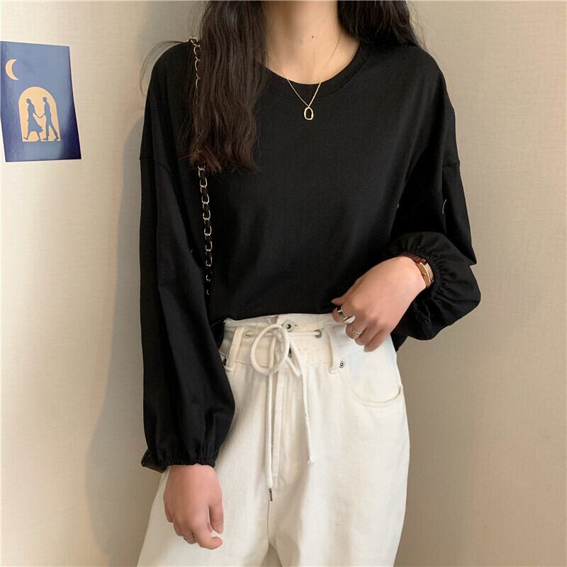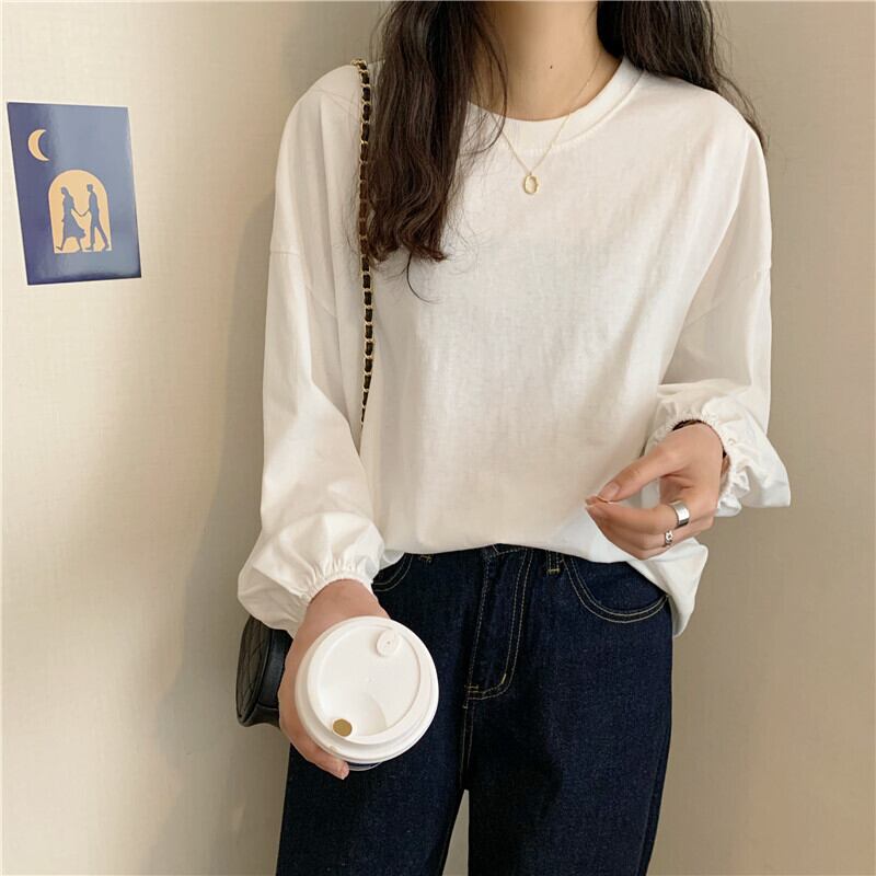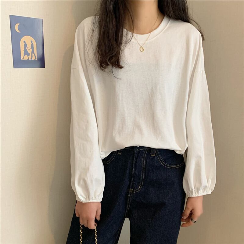 原宿女性 tシャツ春ガールフレンドかわいいソリッド tシャツ秋の女性ルース長袖白トップ y2k 服 ロング ホワイト 大人ガーリー スプリング 春物 オータム 秋物 ソリッドカラー Aim97426777921