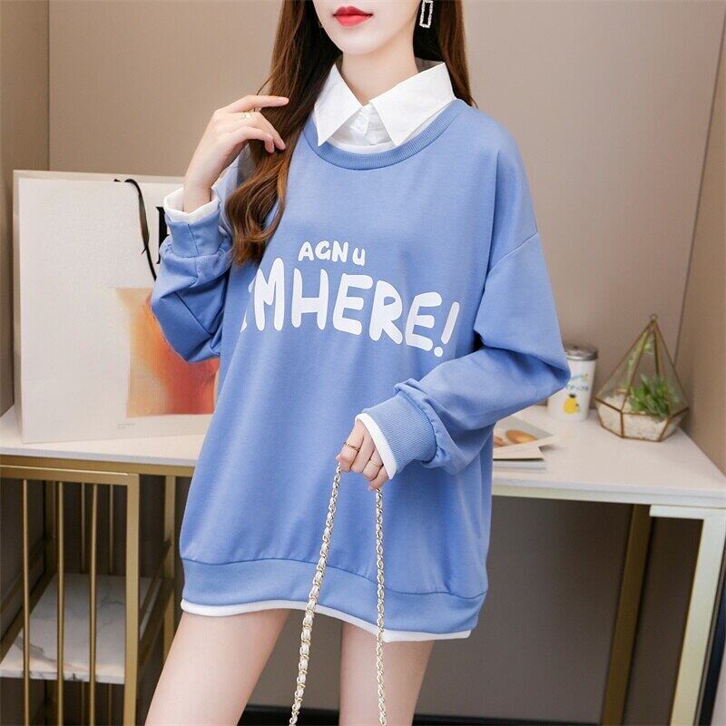 原宿漫画偽 2 スウェットシャツ女性特大パーカーカジュアル長袖パッチワーク薄いパーカー学生かわいい服 ロング 大人ガーリー Aim80215911524