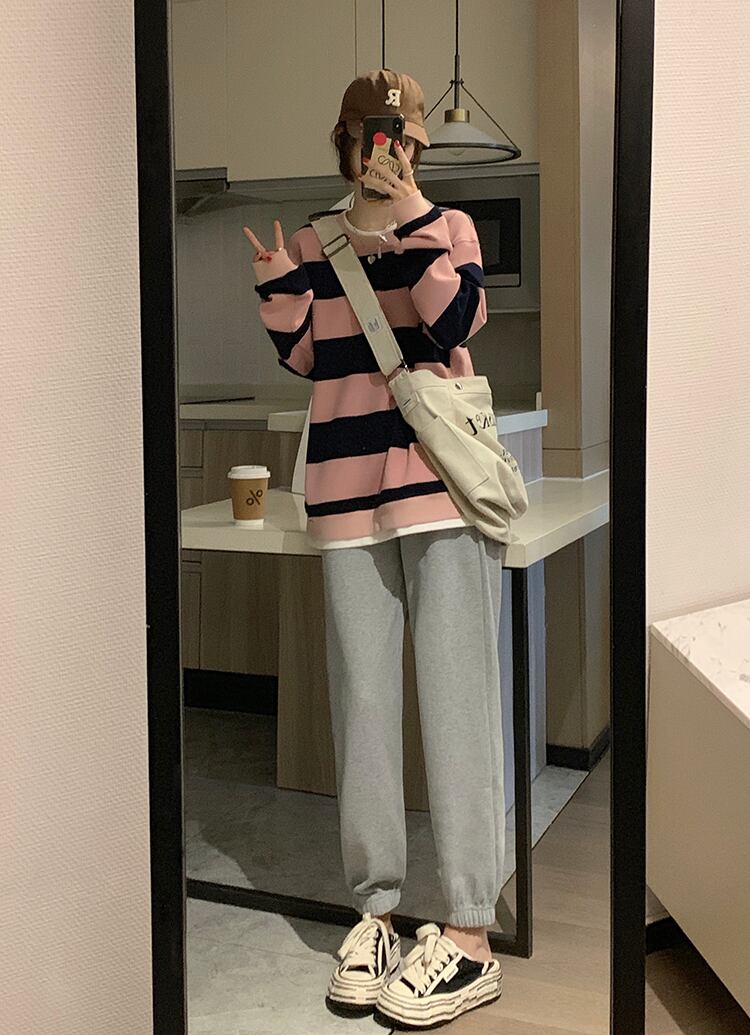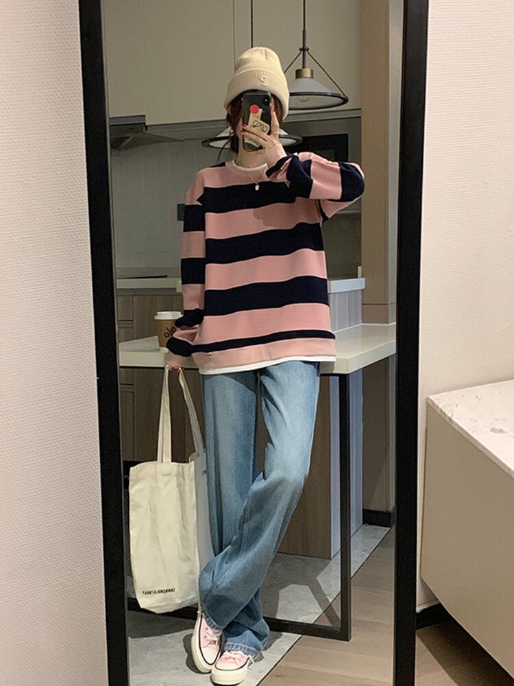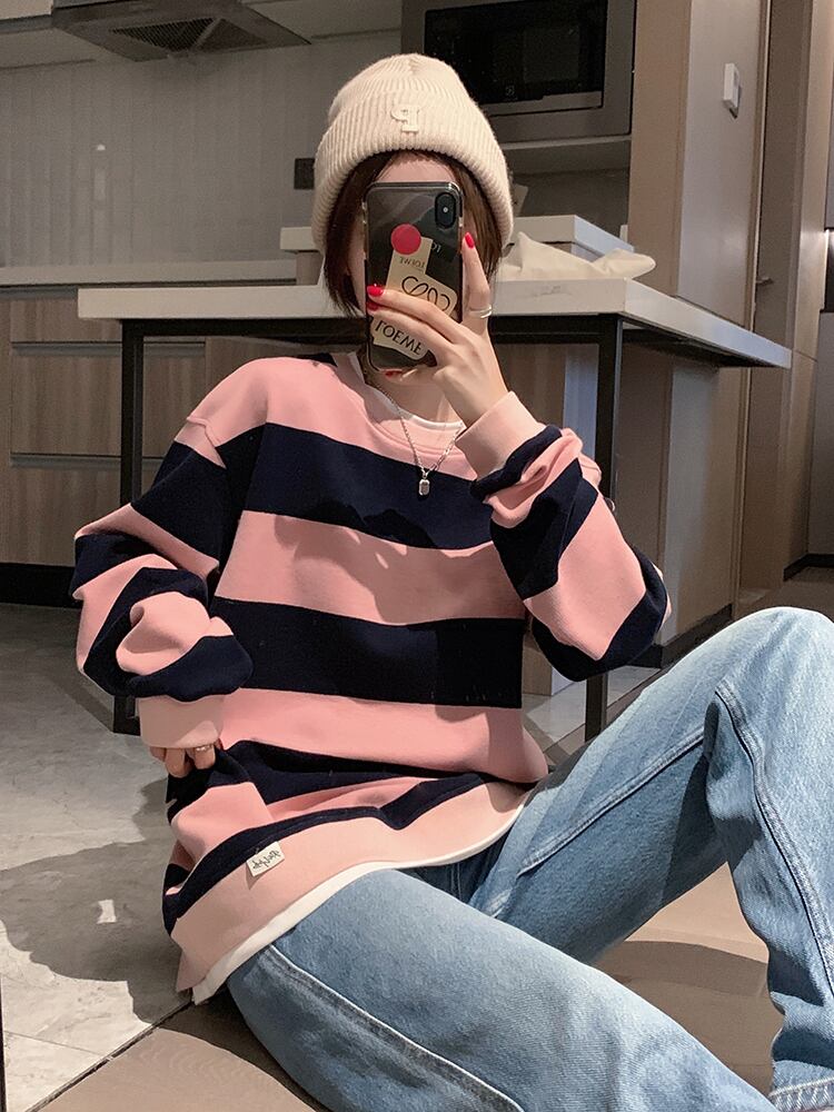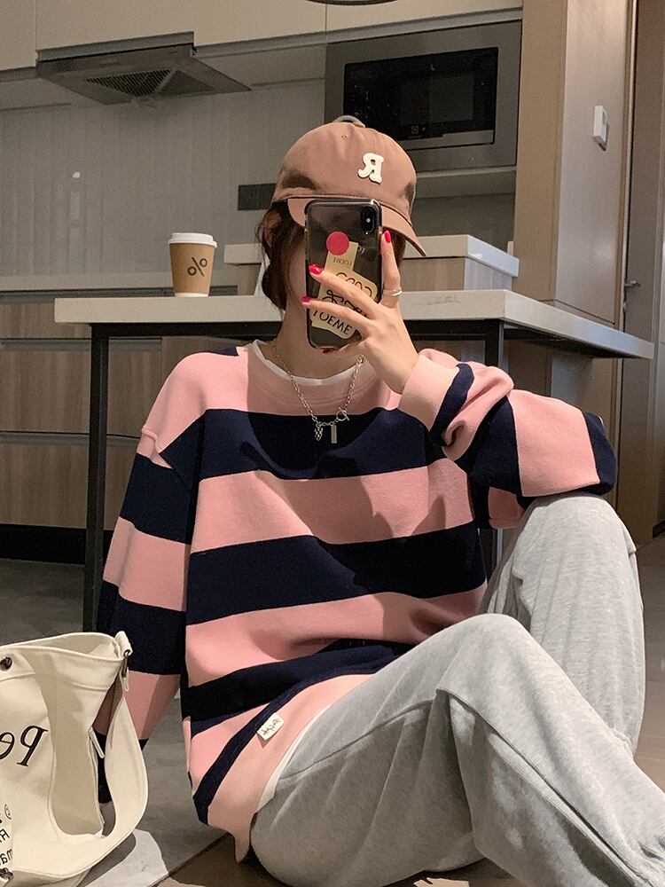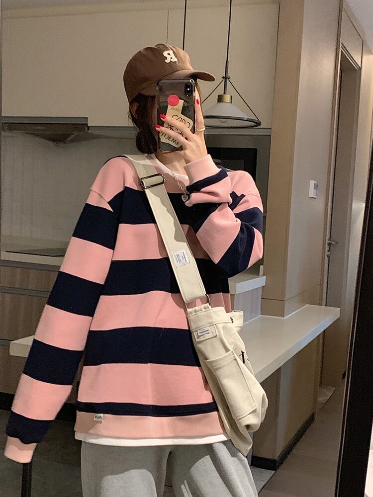 原宿ゴシックストライプパーカー 2022 秋特大パーカー女性ピンク長袖薄型トレーナーロングトップス y2k 服 かわいい オータム 秋物 Aim53450402710