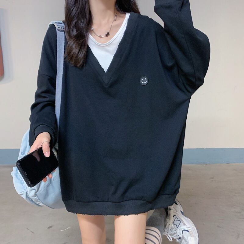 原宿特大薄型スウェットシャツフェイクツーピースパーカー女性長袖ストリート若いゴス y2k トップス女性服 ロング かわいい Aim91943467623